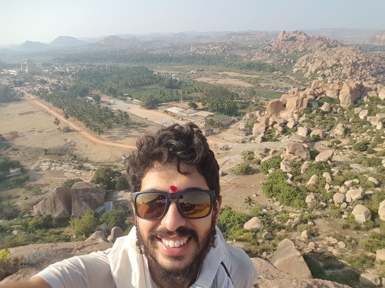 Exploring Hampi Archeological site. Praying for Shiva in a 500 years old temple in the tip of a hill 👳♀️