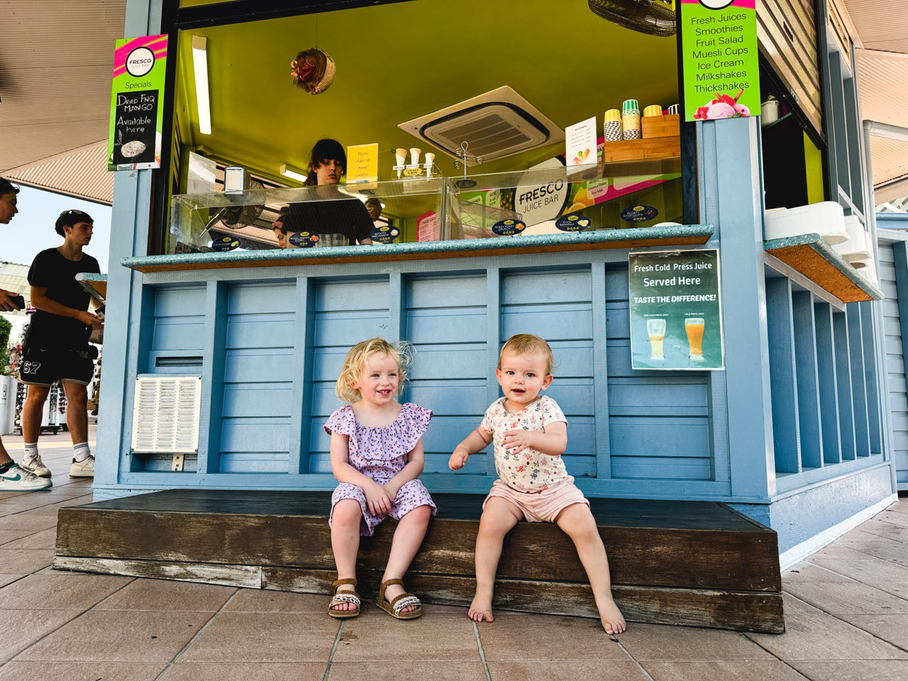 Port Douglas! Ons eerste dagje echt even wat kmtjes maken en Australie verkennen. Pitoresk plaatsje met iedere zondag streekmarkt. En wat een zon! Dat wordt flink smeren de komende weken. Genieten zo even. Op de terugweg naar Cairns waren de meisjes helemaal out :-)