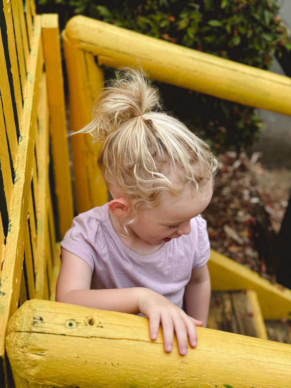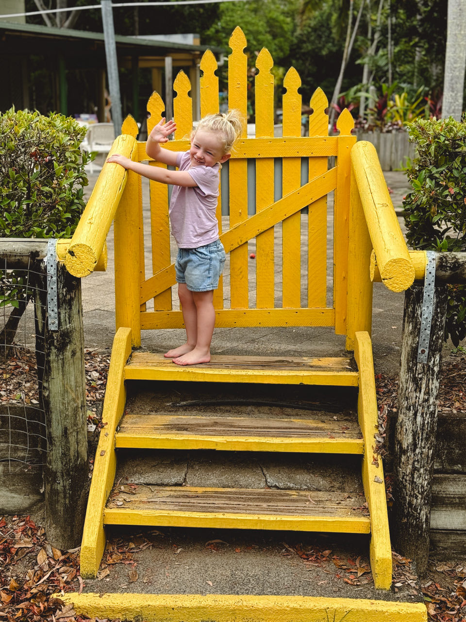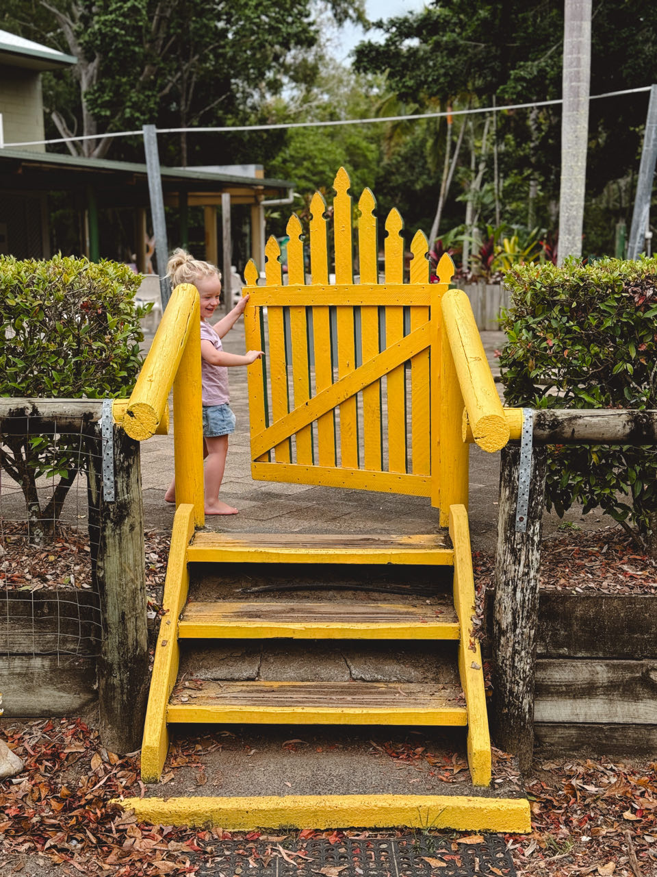 Pap en de meiden spelen nog even wat rondom de receptie. Noa vind het gele hekjes helemaal leuk en laat iedereen na een handjeklap door het poortje lopen.