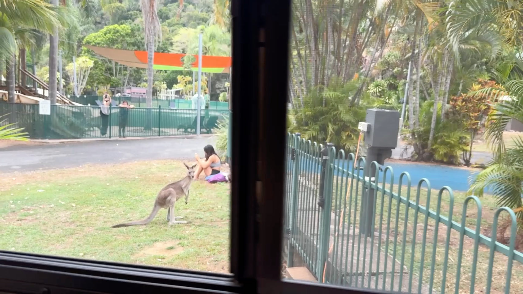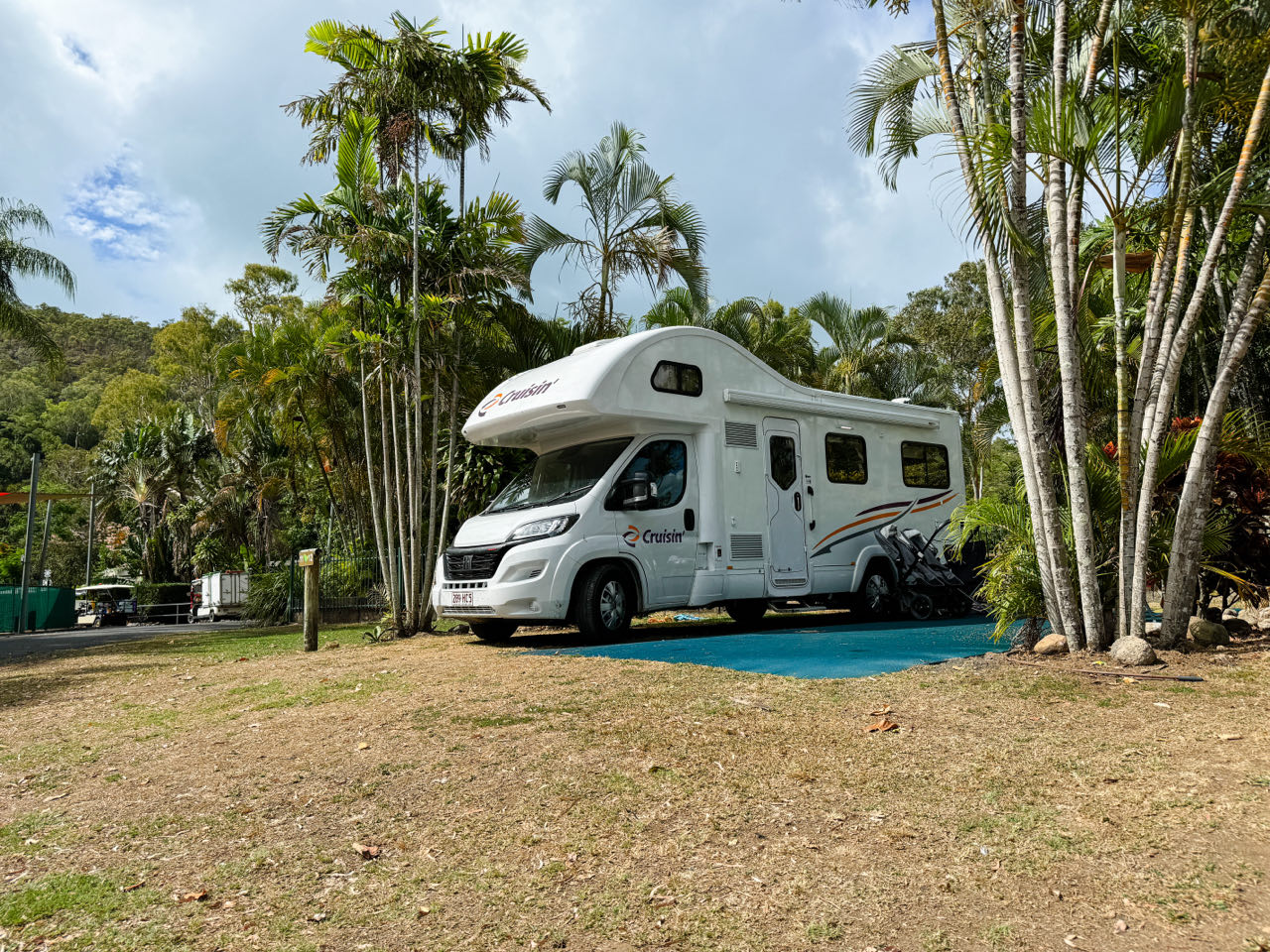 We rijden er naar toe na de Whitsundays cruise. Dus we zullen wat later aankomen op deze camping. Zo laat, dat het al donker wordt. Én we belanden op een gravelroad. Wat eigenlijk niet mag met de gehuurde camper. Maar ja, de navigatie zegt het, dus wij gaan. We hopen maar dat het niet een te lang stuk is. Wel een heel gaaf stuk, want er verschijnen van links en rechts wat kangaroes in de koplampen!