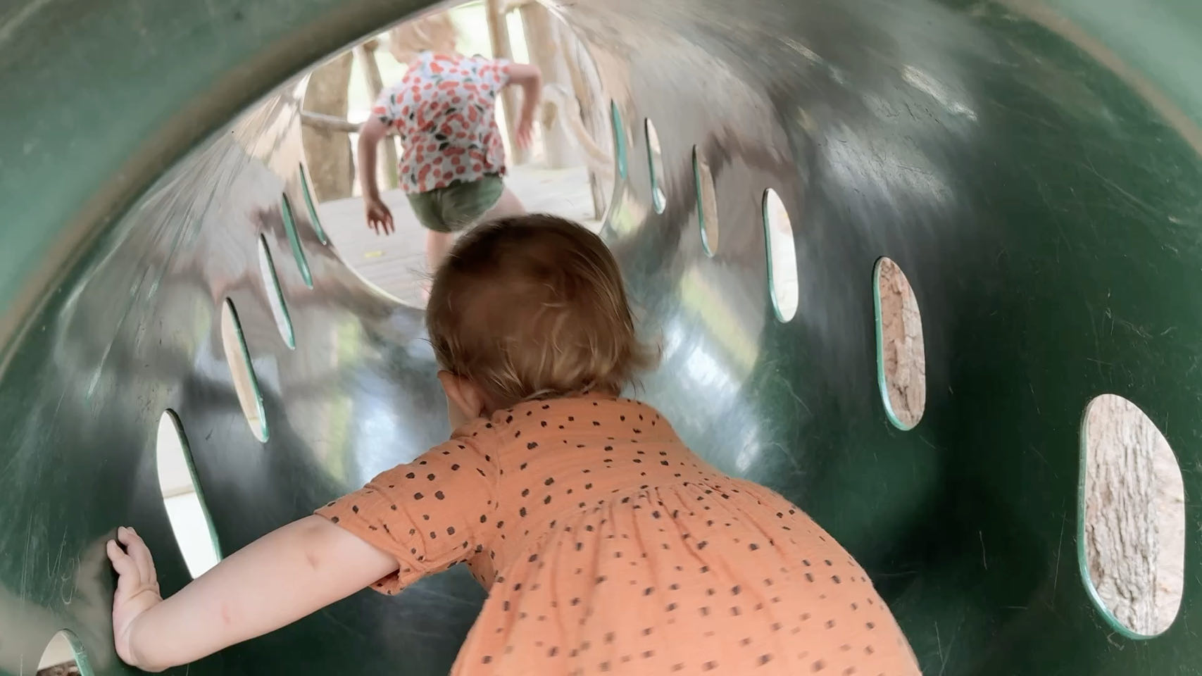 Al moet met name Evi niets hebben van die nieuwsgierige gevogeltes die af en toe wel heel nieuwsgierig zijn. Al daagt zij ze op een gegeven moment ook zelf uit om te spelen … en dan weer hard in de armen van pappa en mamma te rennen.