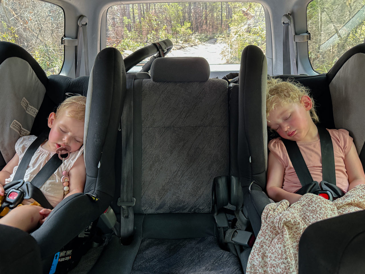Even wennen dat rijden, maar al gauw heeft Sebas de smaak te pakken over al die bos-zand-paadjes. En de meiden? Hoe hobbeliger het wordt, hoe dieper ze slapen.