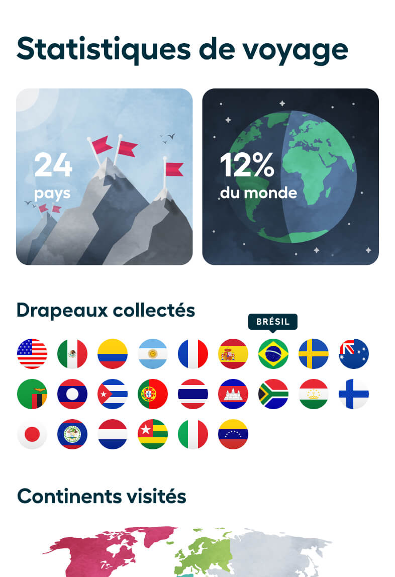 Suivez l'évolution de vos stats de voyage