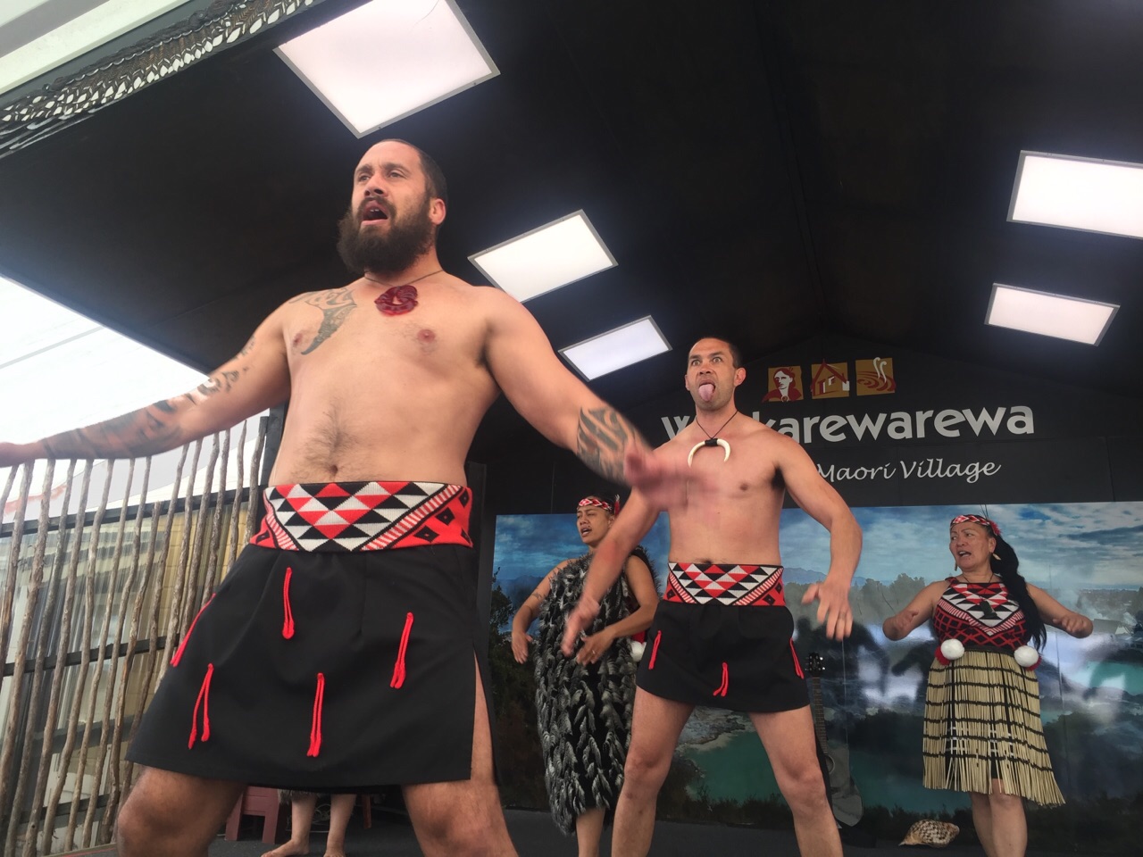 Plenty of geo thermal activity and Maori traditions in and around Rotorua. Couldn't miss a good Haka! The waterfall is a bit further south , near Taupo.