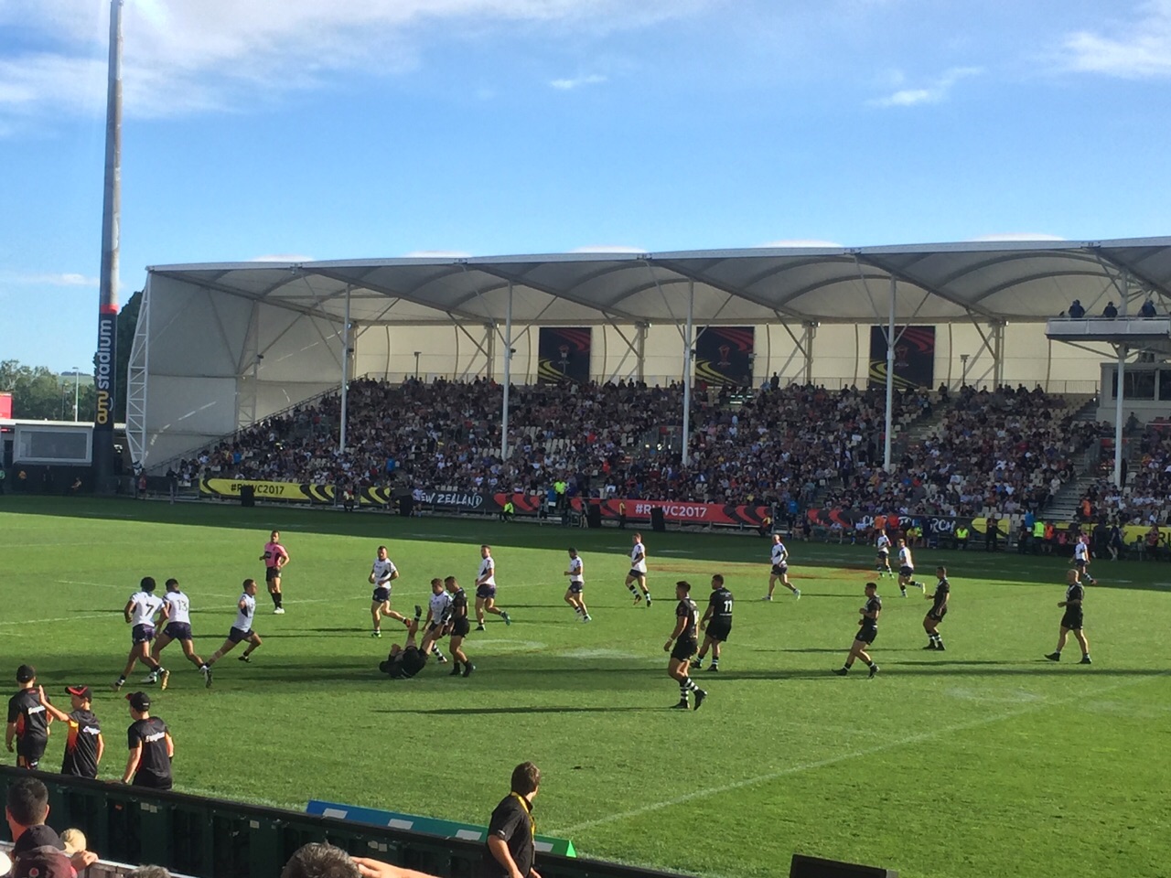 After a short stop in Hanmer Springs, with our first outdoor breakfast in a while, we got to Christchurch... nice little town, still recovering from the 2010-2011 earthquake... million construction sites and container-based temporary places ... Supported the Kiwis at rugby, but got our flag for next week's football match!!