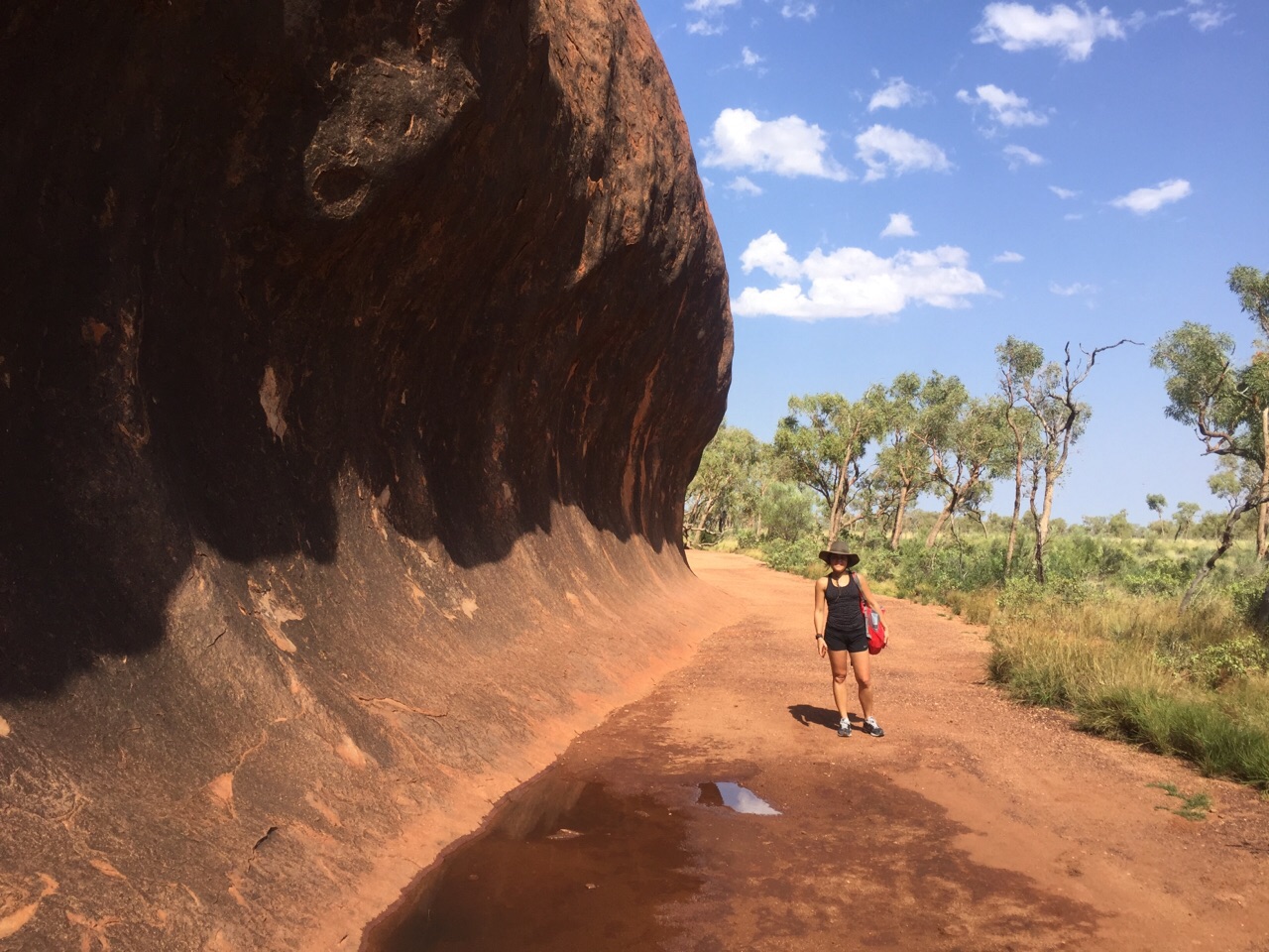 3-days tour to Uluru, the famous “Ayers Rock” ... more impressive than expected! A sea of red (more like orange). First time sleeping in the open, under the stars -and the rain-. Day two was in Kata Tjuta or “The Olgas” ... perhaps even more impressive. Day 3 was in Kings Canyon and then we finished where we started, Alice Springs, with a nice Dinner-Party with the group!