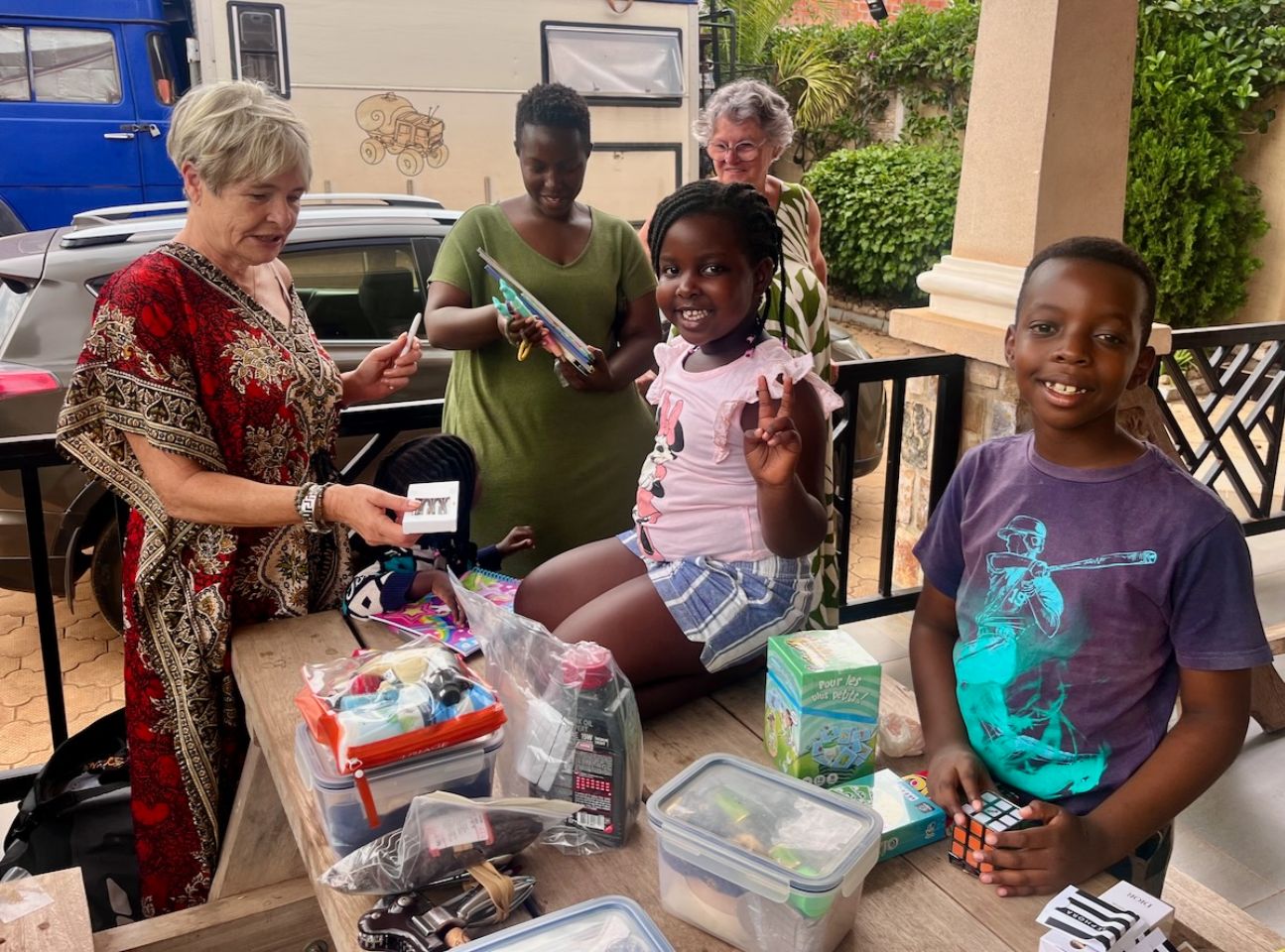 Atterrissage au Rwanda. Retrouvailles XXL avec la famille rwandaise et leurs trois enfants. Nous sortons nos valises magiques à double fond : jouets, habits, douceurs et surprises. C’est un peu comme si le Père Noël avait pris un vol Brussels Airlines au lieu de son traîneau : chaque paquet déballe des cris de joie, des rires, des exclamations, et Cargol, fidèle éléphant de métal, ronronne de plaisir à revoir tout ce beau monde.