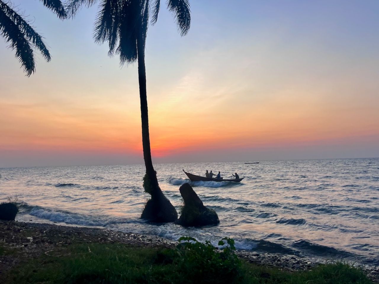 Première étape pour Zabeth : la vraie Afrique se dévoile. Un petit lac pour la nuit, des femmes qui lavent leur linge à même l’eau, des enfants qui rient aux éclats quand on partage un peu de jacquet. Elle regarde, fascinée : chaque geste, chaque sourire, c’est déjà un livre ouvert. Le soleil s’éteint derrière les collines, peignant le ciel comme si le Rwanda lui offrait un tableau d’accueil.L’Afrique sait peindre ses couchers comme personne.