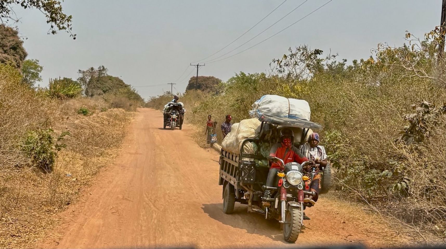 The Tanzanian backroads unfold like a living sketch: graceful walkers, cowboys herding cattle, and jugglers balancing tools or water cans on their heads. Vendors parade like Christmas trees draped in shoes and bags, while cyclists perform circus acts hauling goats, firewood, and sacks on two dusty wheels. Donkeys struggle, cows rule the carts, and tuk-tuks wobble through potholes like belly dancers.