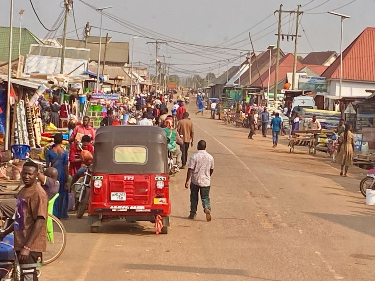 Habitations éparses traditionnelles et hameaux de micro-boutiques en 5 m² chrono. Tu sais que tu touches une “ville” quand un peu de goudron ose se mélanger à la terre, et que tout ce petit monde s’y retrouve, comme à une fête foraine qui grouille sans grande roue.