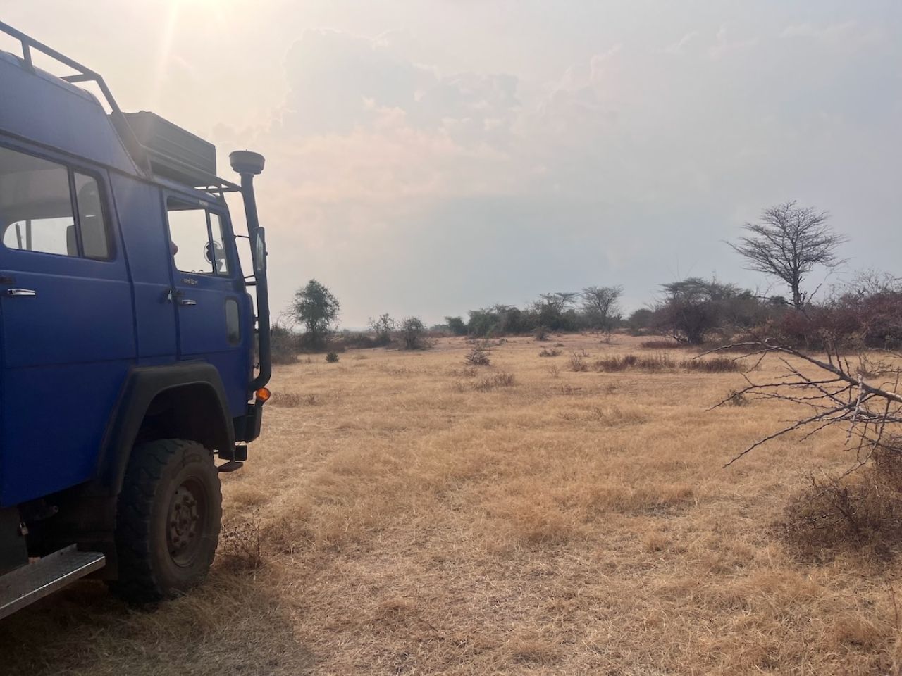 Villages appear as clusters of tiny shops until the rare strip of tarmac declares a “town.” Meals mean fried omelettes stuffed with chips, beans, ugali, and mystery meat for shark-level jaws. By night, Cargol slips into the bush, resting under the starry LEDs of the African sky.