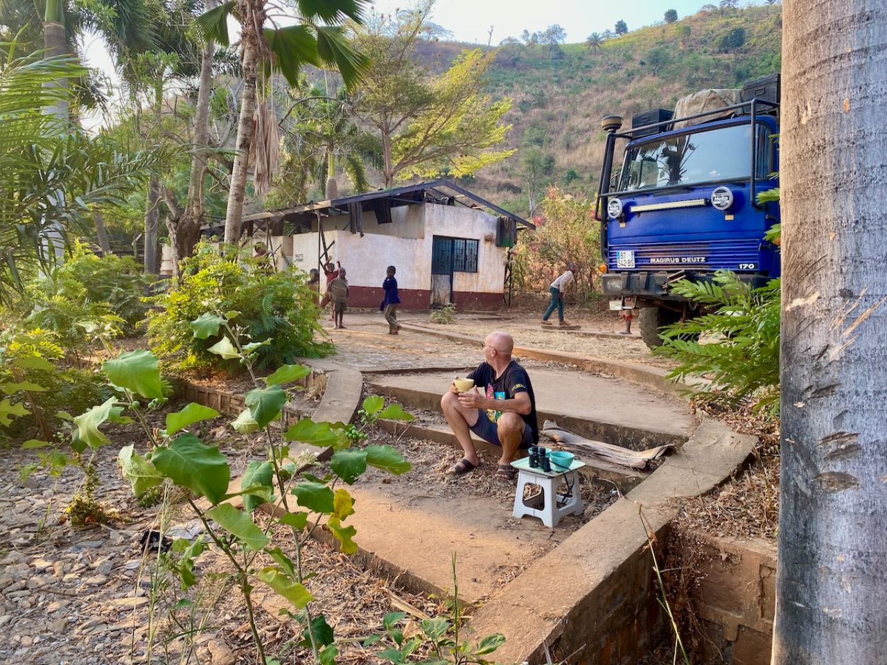 Heading for the Buta Falls. Cargol groans, trust falters. The track? A geology exam gone wrong, holes, shaky bridges, chaos deluxe. Ten kilometres from the goal, we give up. Retreat to the Buta seminary: calm on the surface, endless negotiations to park for the night.