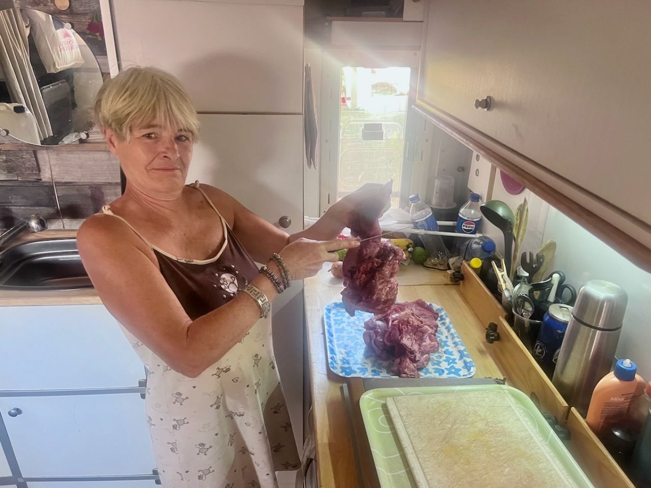 Zabeth, 72, leaves a day late, calm, broke, unstoppable. The jungle’s got nothing on her.
