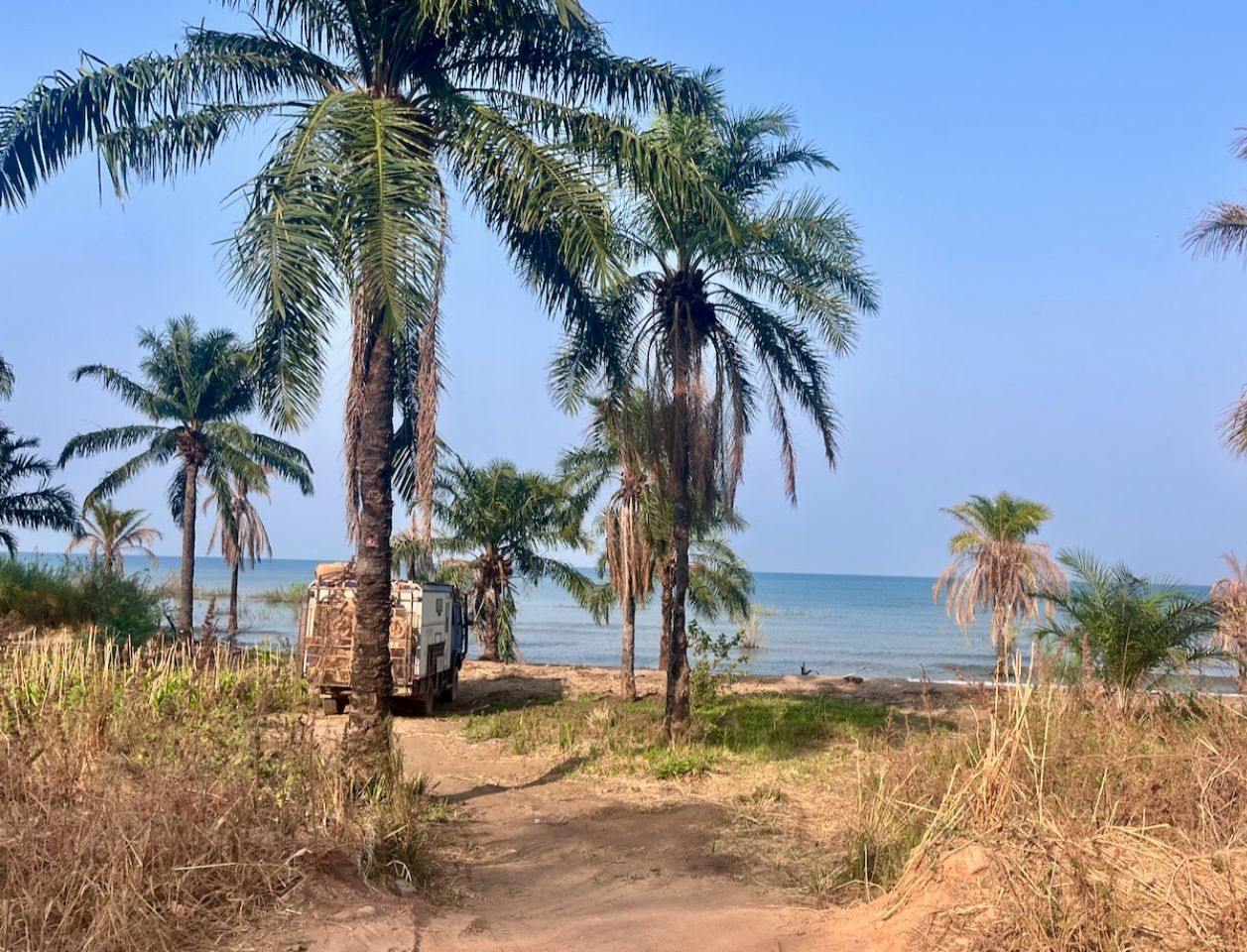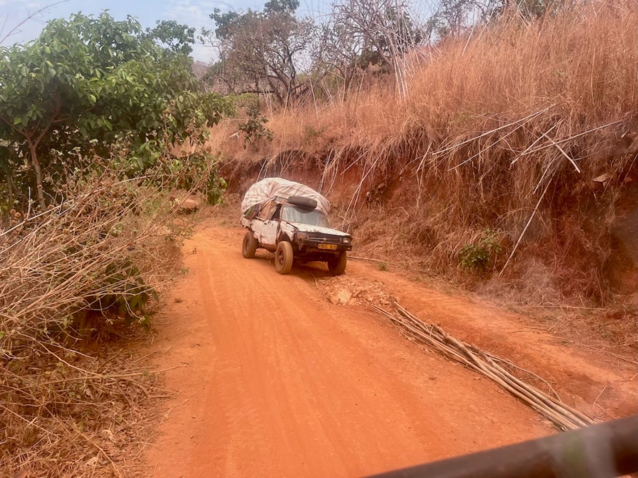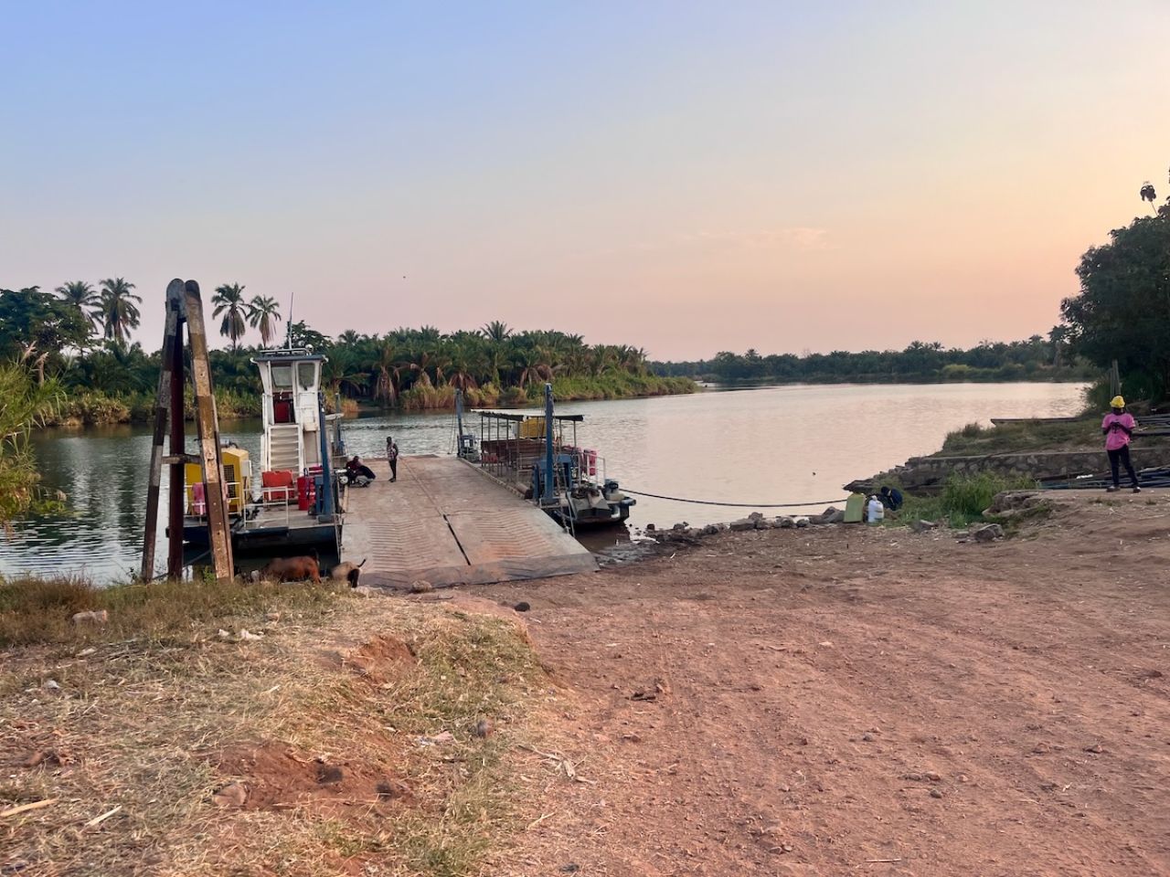 Les deux premiers jours, sur une 100 aine de km, la piste joue la gentille, en mode profite mon p'tit gars ! Un ferry barge grinçant, des petits villages trĂšs agricoles et pĂȘcheurs, pas vraiment de cases Ă commerces, cases en terre et torchis local... bien paisible tous ces coins, c'est l'Afrique qui respire par les pores de la Terre, l'Afrique comme nous l'aimons. Cargol ronronne comme une bĂȘte qui aurait trouvĂ© son filon de diesel pur jus