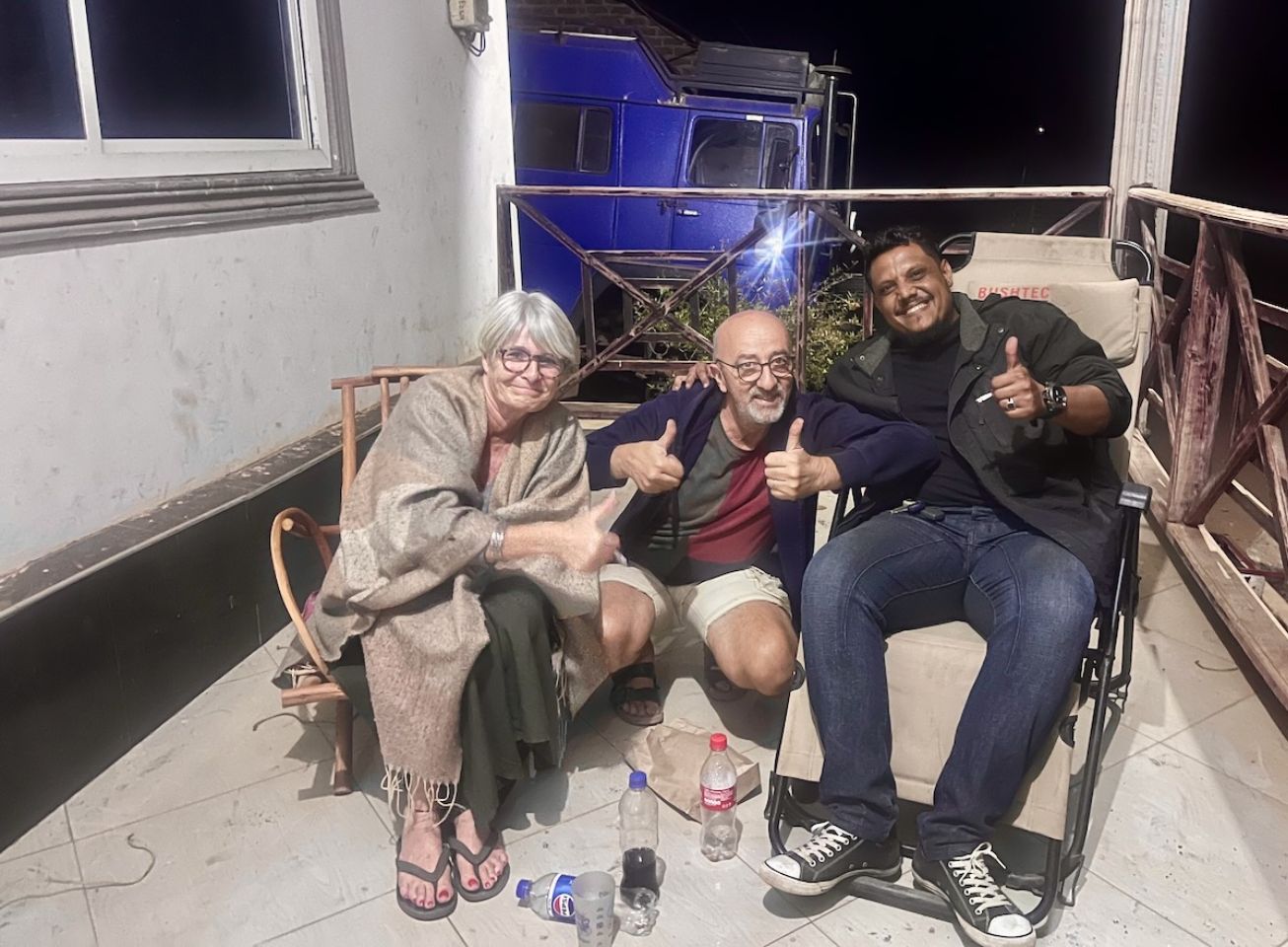 Pendant ce temps, dĂ©barque Christian, overlander ami pour la vie, croisĂ© Ă Oman et au Kenya. On fignole encore deux-trois bricoles, on recale quelques boulons traumatisĂ©s, on donne une caresse aux pneus, et on part se poser chez Humud dans leur grande maison en construction, version chĂąteau africain. Quatre nuits tranquilles Ă reprendre des forces, ambiance bonne franquette, visites quotidiennes de la tante, des sĆurs, des copains... et des voyageurs Brigitte et Yann. ApĂ©ros, BBQ, discussions "Afrique profonde".