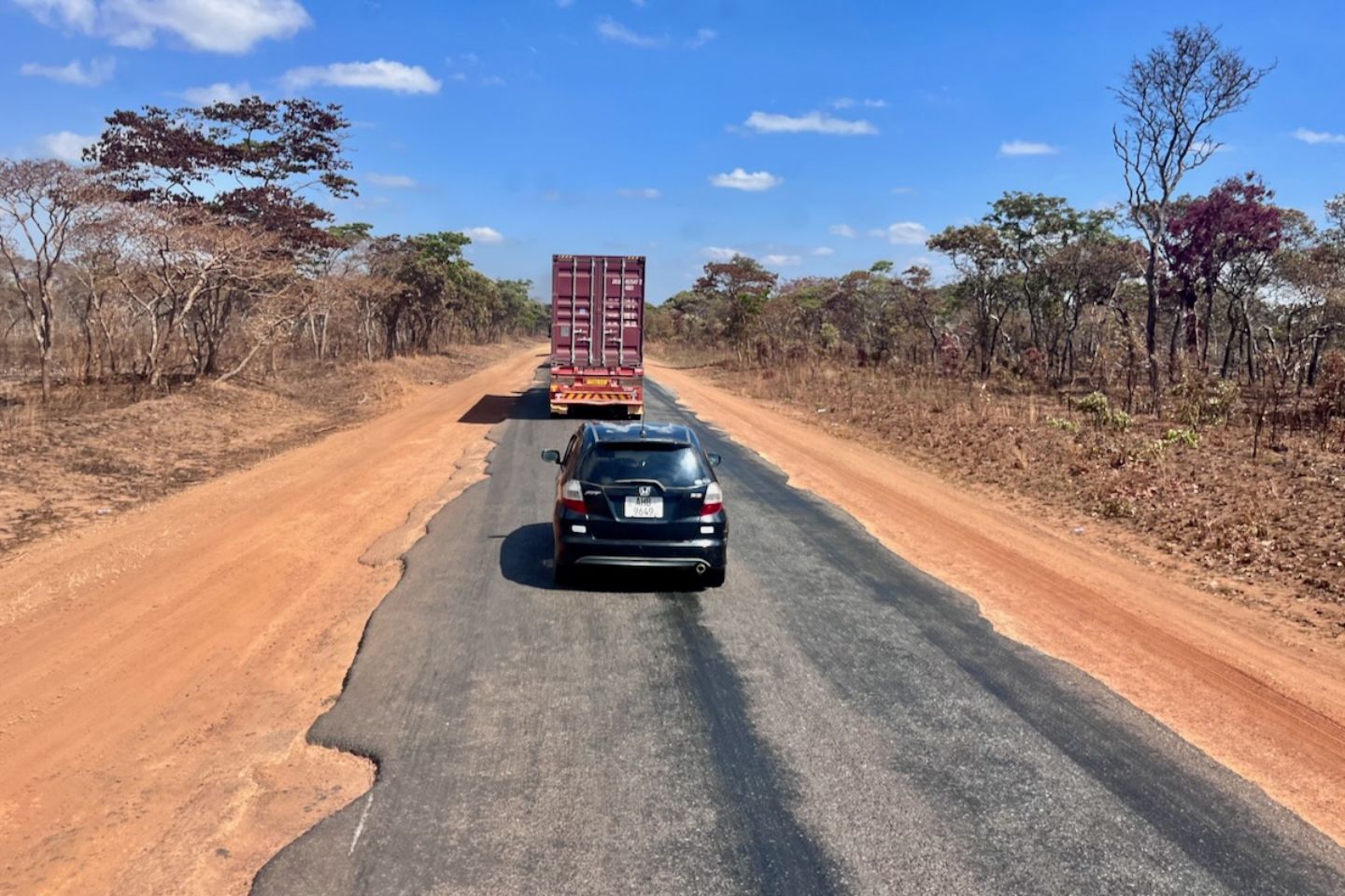 La route zambienne du nord et du centre ? Imagine une 2 voies pour voitures lilliputiennes, Ă pĂ©ages quand mĂȘme svp, des cĂŽtĂ©s du goudron grignotĂ©s par une armĂ©e de termites dĂ©chaĂźnĂ©es, et une procession infinie de camions transportant tout ce que la planĂšte peut produire : minerais, produits, espoirs, illusions, peut-ĂȘtre mĂȘme tous ensemble. Vous imaginez donc que quand vient un camion en face, tu serres les 2 fesses Ă en pincer le siĂšge.