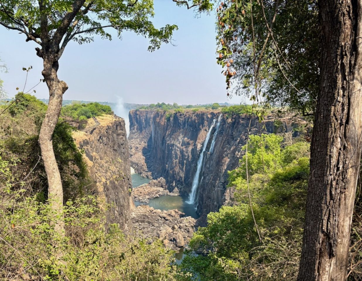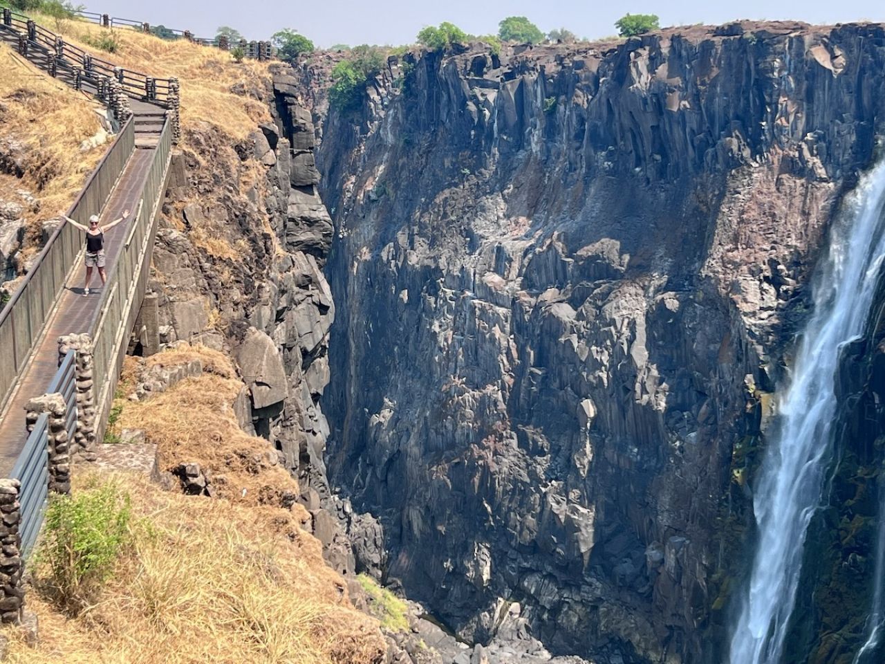 On file aux fameuses chutes de la Miss Victoria, celle qui font autant rêver que la Miss Niagara... Sauf que celle là , elles ont une énorme variation de débit en fonction de la saison. Actuellement c'est plus une douchette version économe, pas beaucoup de jus. Nous, nous étions au jus et ne sommes pas déçu pour autant. Par contre, la quantité de liquide réclamée à l'entrée pour le touriste international ne varie pas elle (20$). Pour ce flots de billet, nous avons quand même une jolie petite baladounette dans un beau cadre avec quelques belles vues sur cette fracture terrestre qui reste impressionnante.