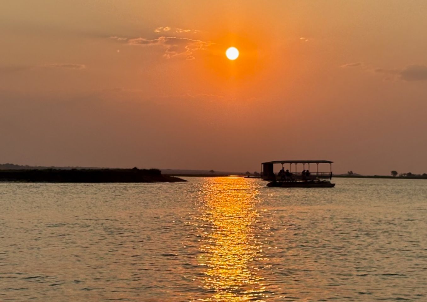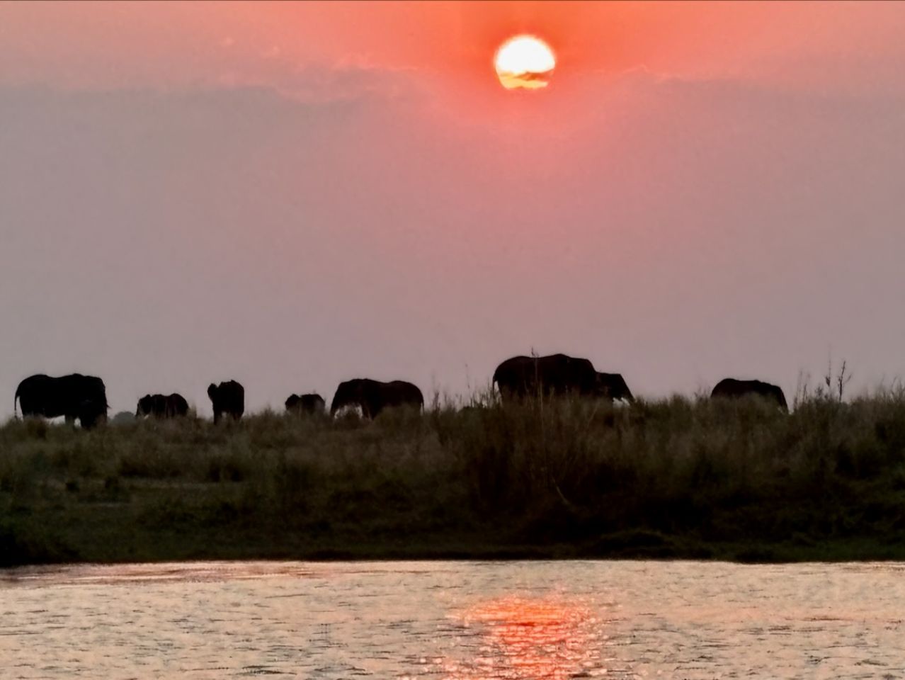 Et le tour en bateau alors ? Ăvidemment quâon y va ! Nous avons jouĂ© les touristes traditionnels mais dans un petit bateau (7 pers., que des locaux) qui va plus vite que les gros et qui sait arriver au bon moment au bon endroit. 3 heures dans le parc du Chobe... Ă©lĂ©phants en troupe, en famille ou en procession, antilopes, crocodiles, hippopotames, buffles, et coucher de soleil rouge en prime comme s'il signait le parfait tableau. Ă certains moments, les bĂȘtes sont si proches que tu te demandes si tâas payĂ© une balade ou une intrusion dans leur salon. Ce genre de moment qui te murmure doucement Ă lâoreille : "Tu vois⊠tâas bien fait de venir."