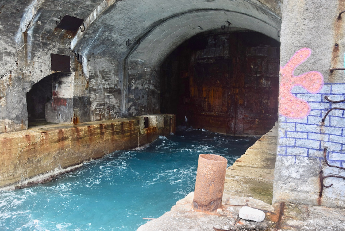 Vestige de la folie du dictateur Hoxha : bunker à double entrée pour sous marin