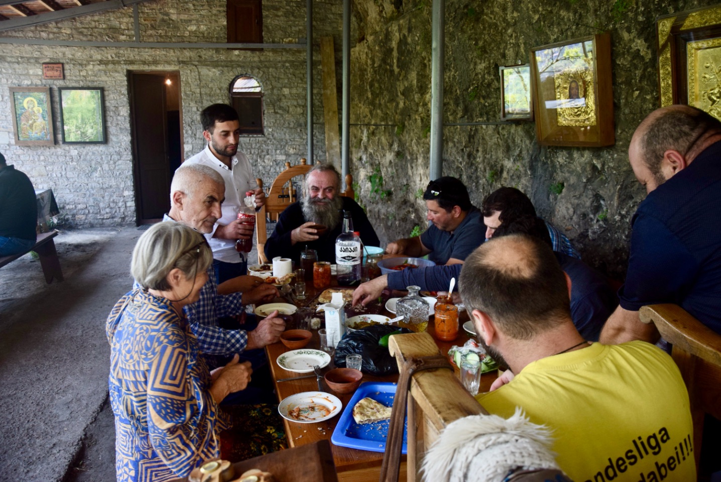 Etre au bon endroit au bon moment... si vous y montez les 250 marches vers 13h, vous aurez peut-être la chance comme nous d'être inviter à la table du père et de ses serviteurs