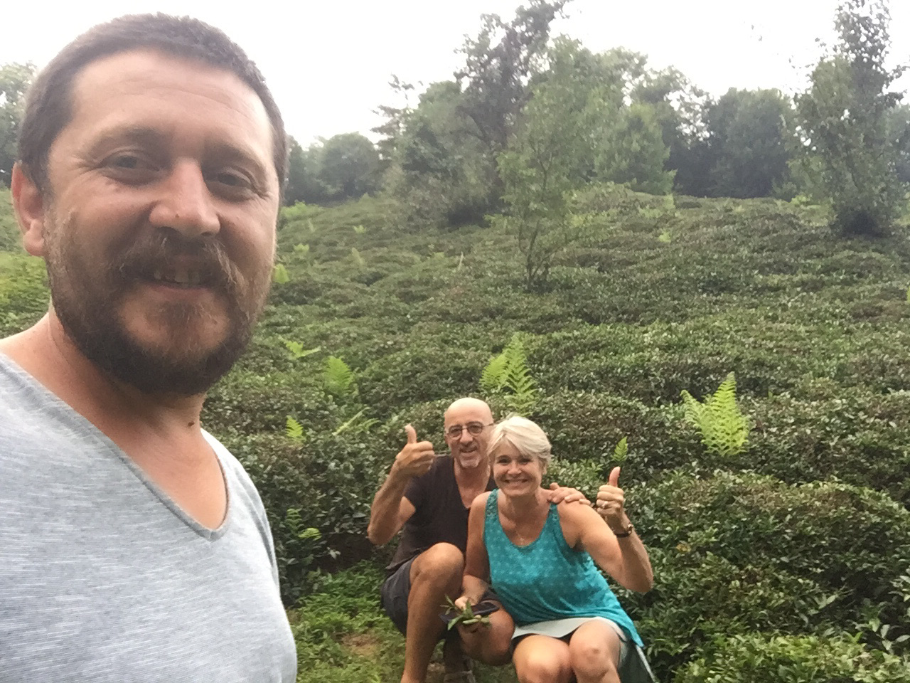 Après les montagnes arides, pleines de cailloux sur des centaines de km, nous passons en 30km dans une région montagneuse humide où la végétation est exubérante ! Sacré contraste, la culture du thé est prédominante…