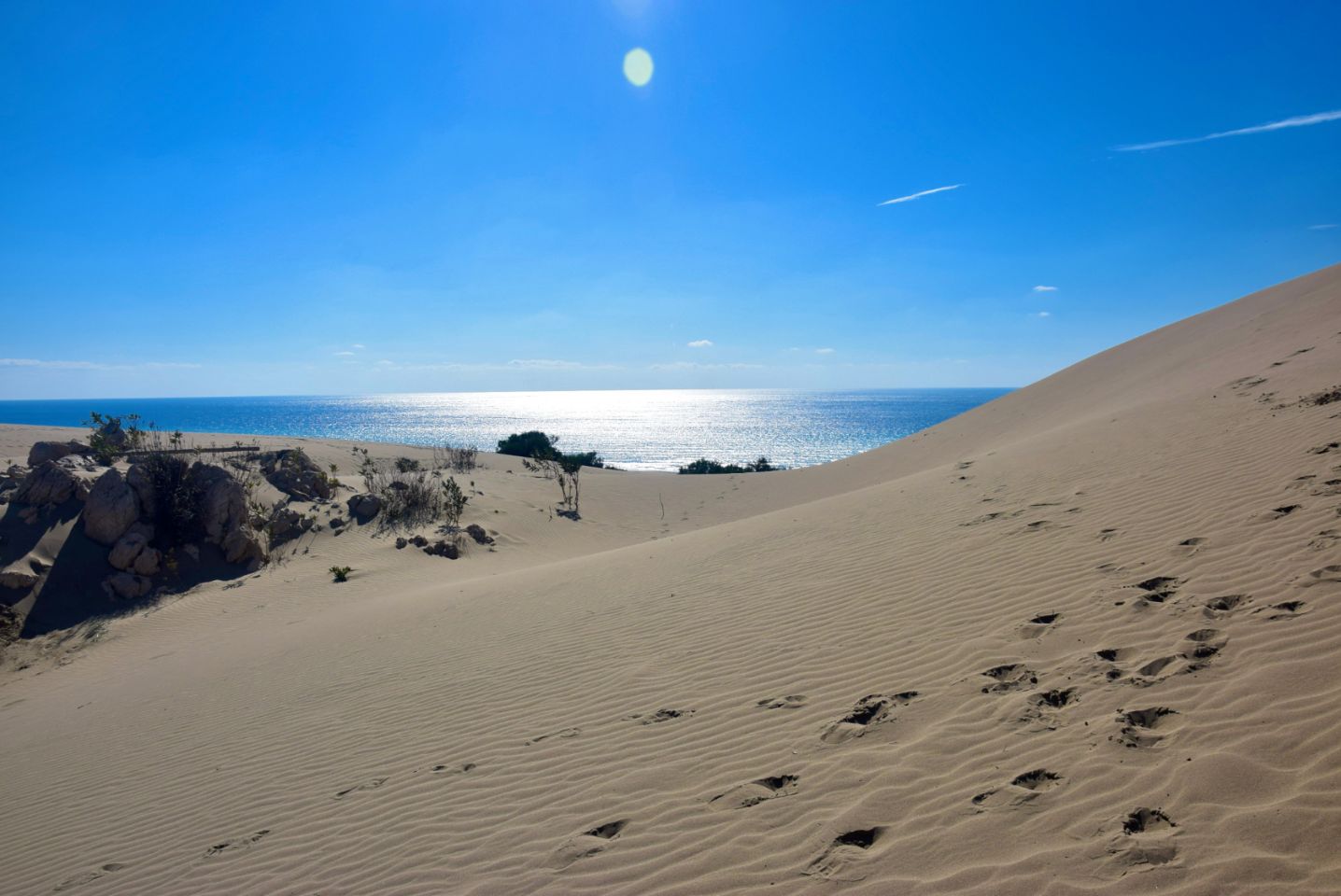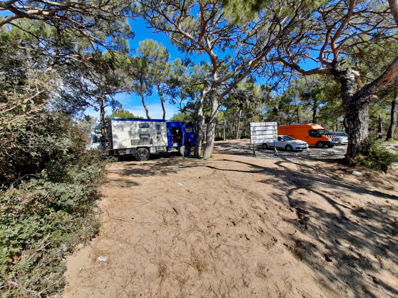 1 km de piste tranquilou pour arriver au spot. Hors saison, la jandarma ne nous a pas demandé de quitter les lieux pour dormir.