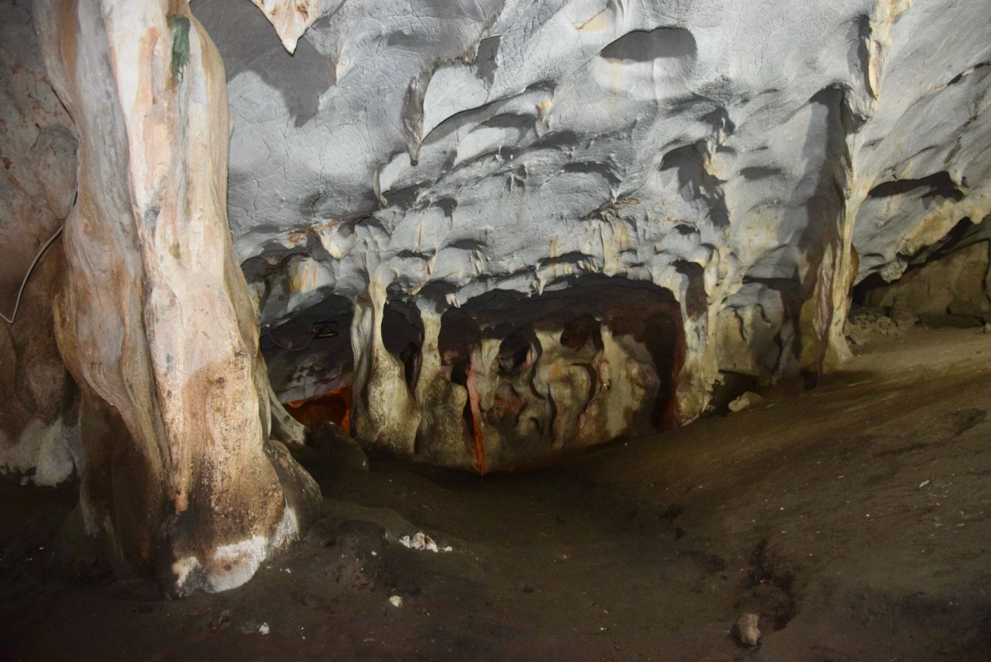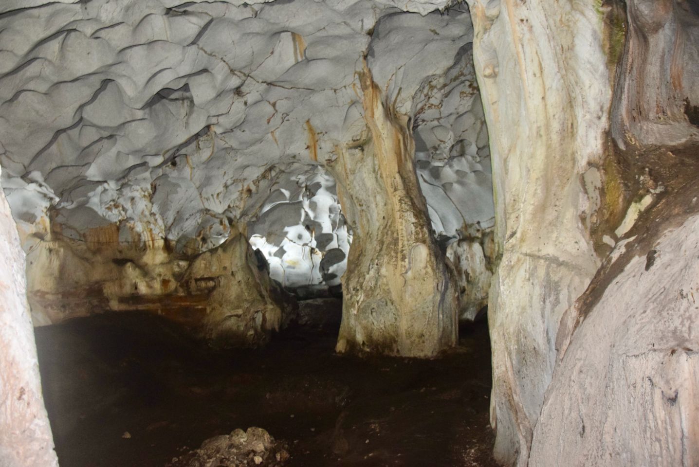 7 cavités dont 2 accessibles, Pas de tites ou de mites, pas grand chose à voir en fait. Mais un sentiment étrange, du blanc du gris du noir, des cavités au plafond partout et des cris curieux, ceux de chauves souris, seules habitantes désormais de ces lieux.