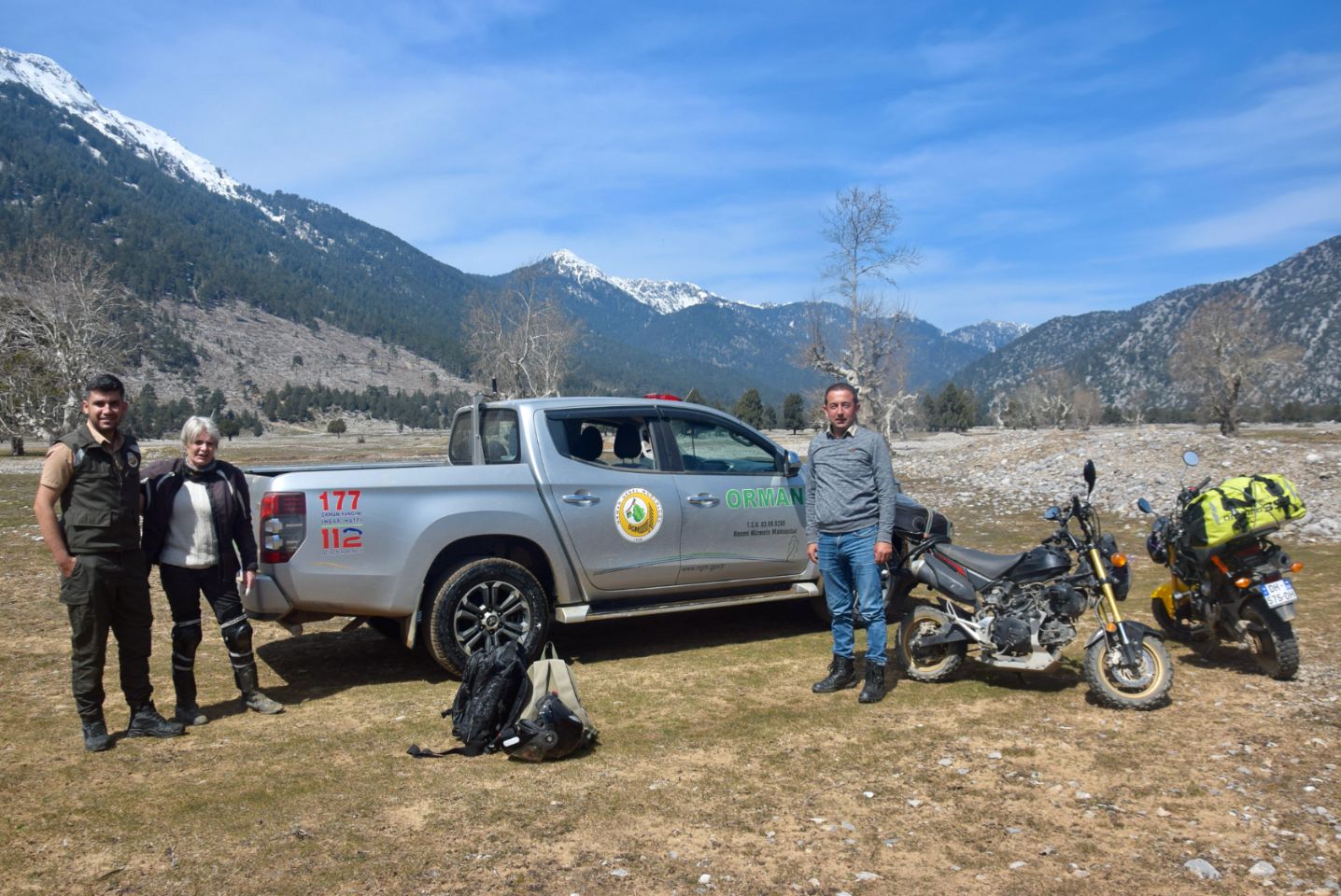 Les rangers qui passaient par là nous disent de laisser nos motobylettes et nous voilà pour un petit tour avec eux. Toujours cool ces turcs ! Cataclop cataclop !