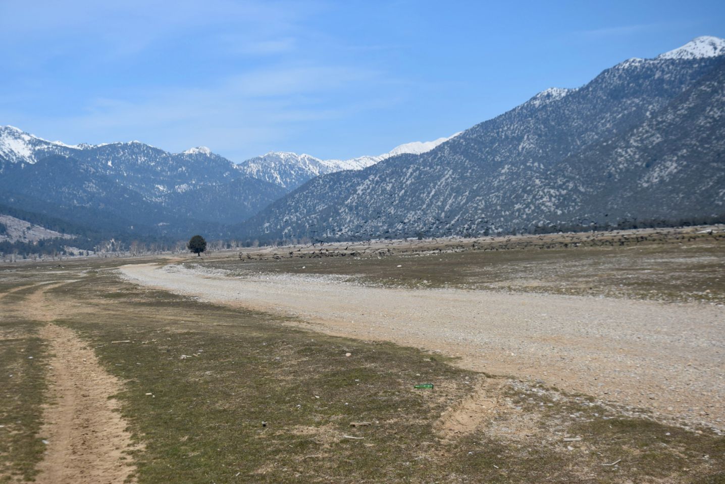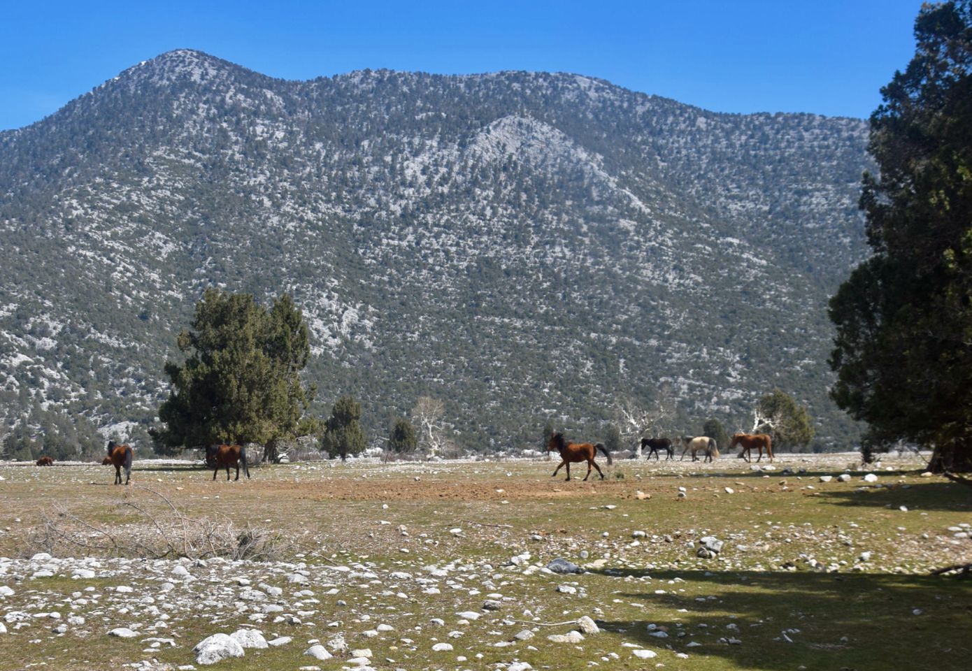Un grand plateau à 1100m d’altitude, une belle réserve pour les chevaux sauvages. Paradis équestre, plus de 1000 chevaux y galopent en liberté. Au fond de la vallée, un gué nous empêche d’aller plus loin.