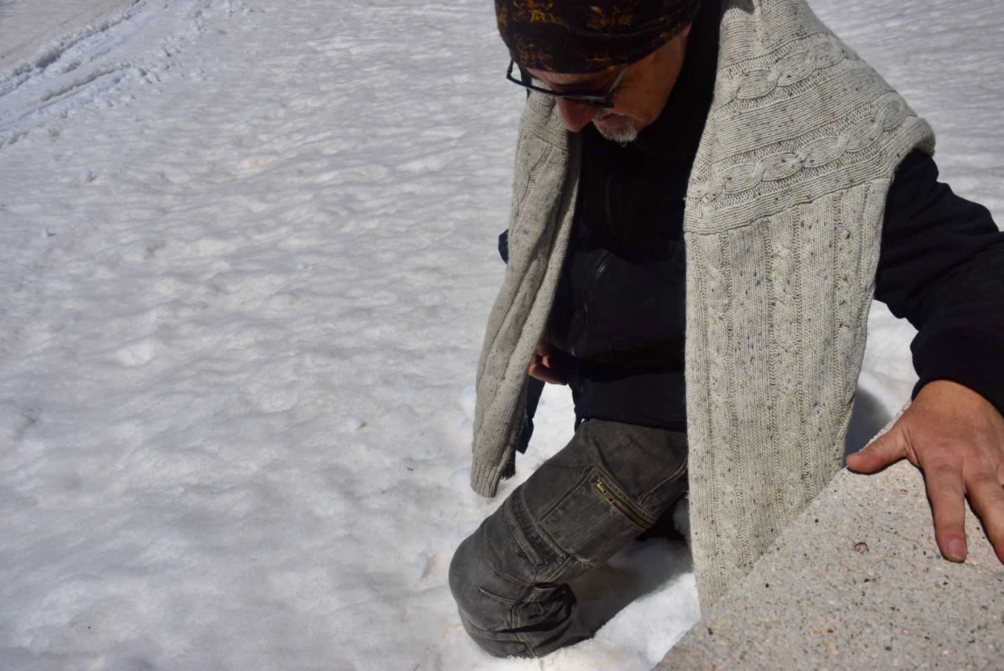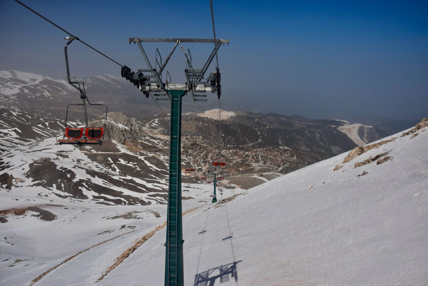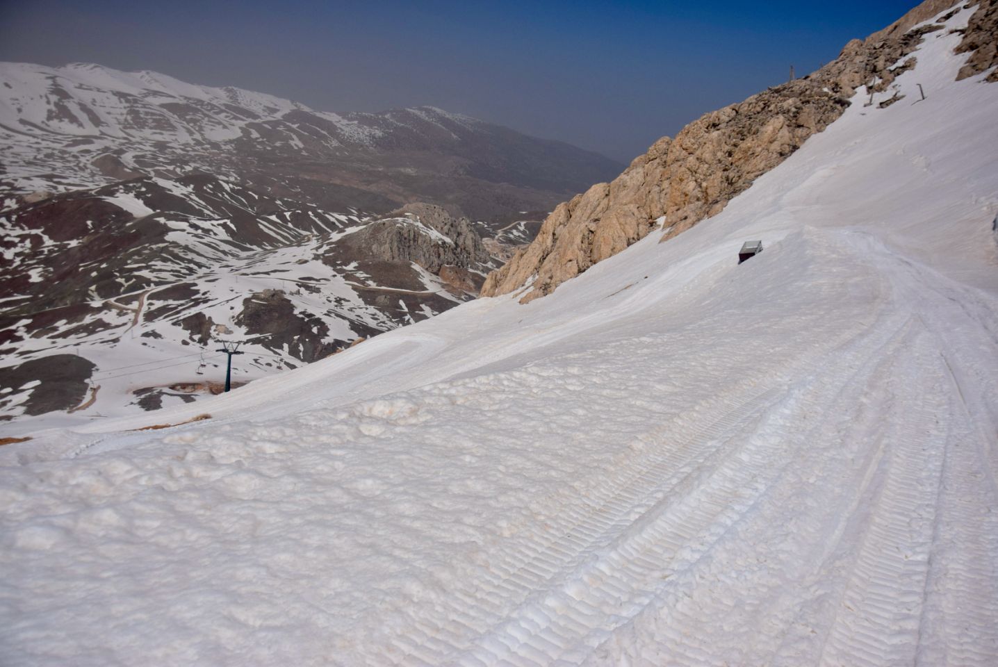 Ben ça se passe que tu t’enfonces dans la neige et puis c’est tout car de là-haut tu vois rien de plus. La petite station qui domine Antalya et la mer… mais pas pour nous, du moins pas visible car même si le vent a quasiment disparu, l’atmosphère est chargée de particules et la visibilité est très mauvaise.
