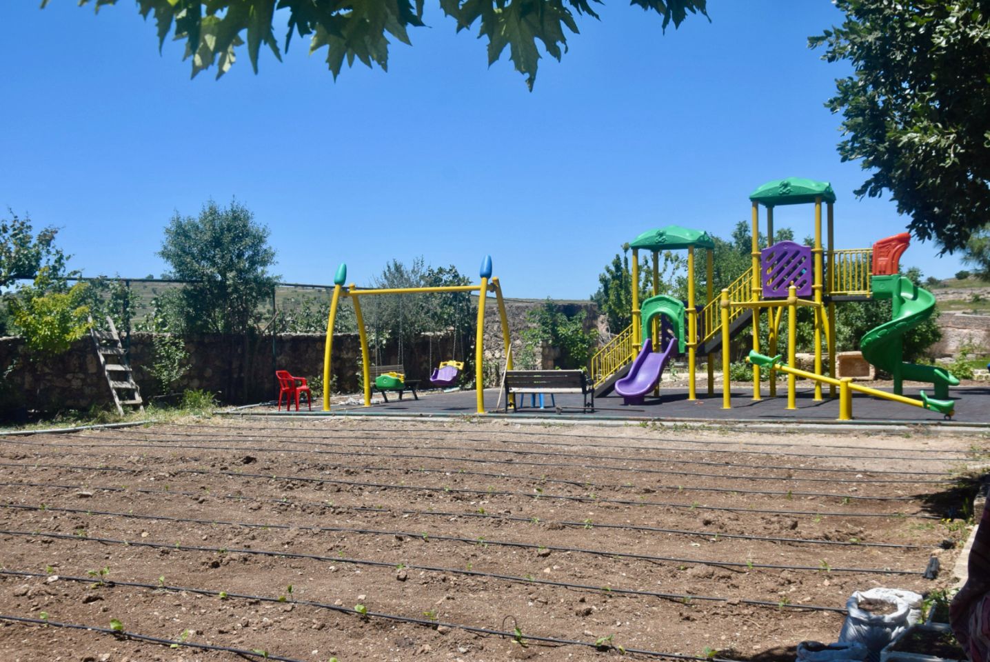 Oui il y a même des enfants qui vivent ici, d’où l’aire de jeux à la turque jouxtant le potager. A moins que retomber en enfance soit une source de méditation. A réfléchir… (j’vais pitêtre me trouver une aire de jeu moua...)