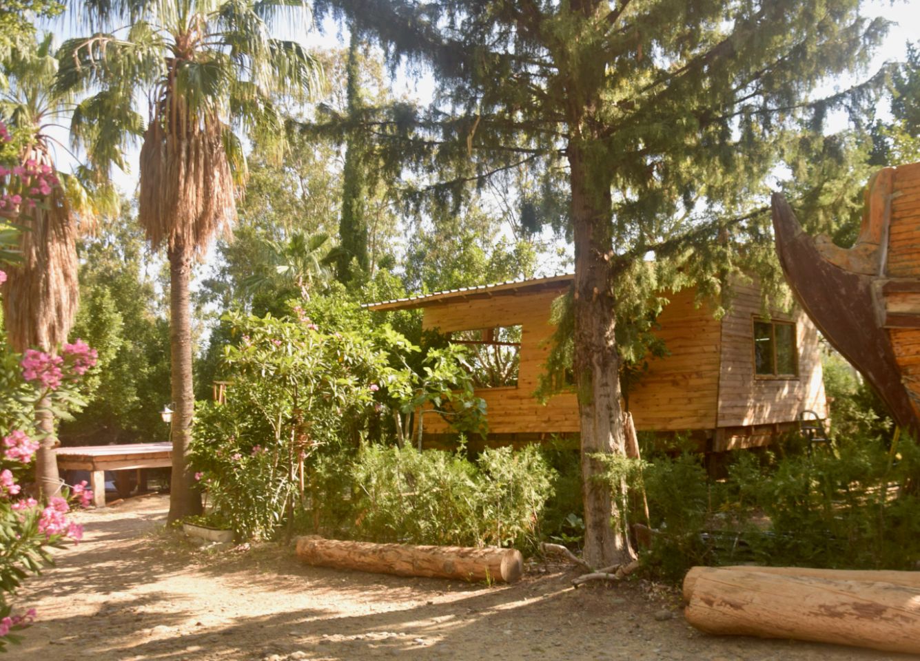 Orient camp… Coincé entre la plage et la montagne, un camping original, tenu par Merly, artiste qui est parti d’un terrain en friche il y a 20 ans pour en faire un havre de verdure. Artiste travaillant entre autre le bois, il a conçu et réalisé des bungalows originaux. Même si Merly en a un peu marre de tout ça et que l’entretien