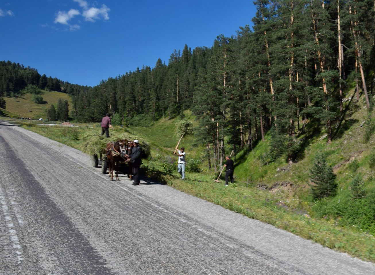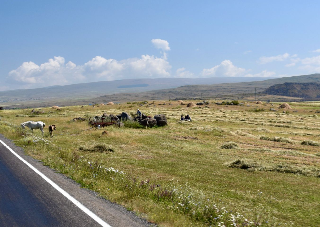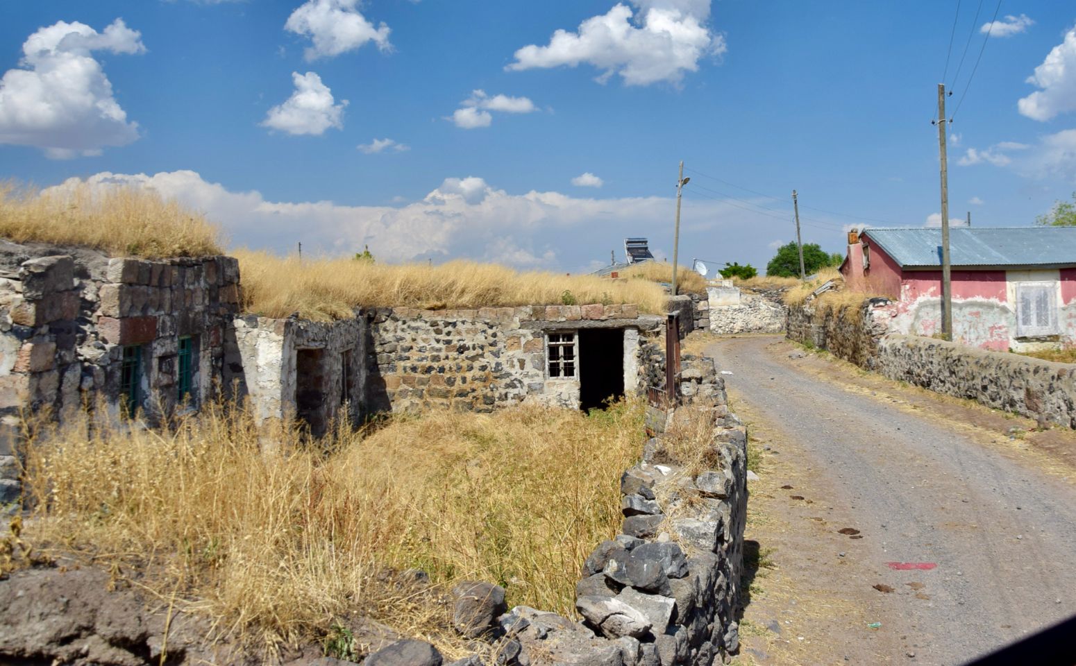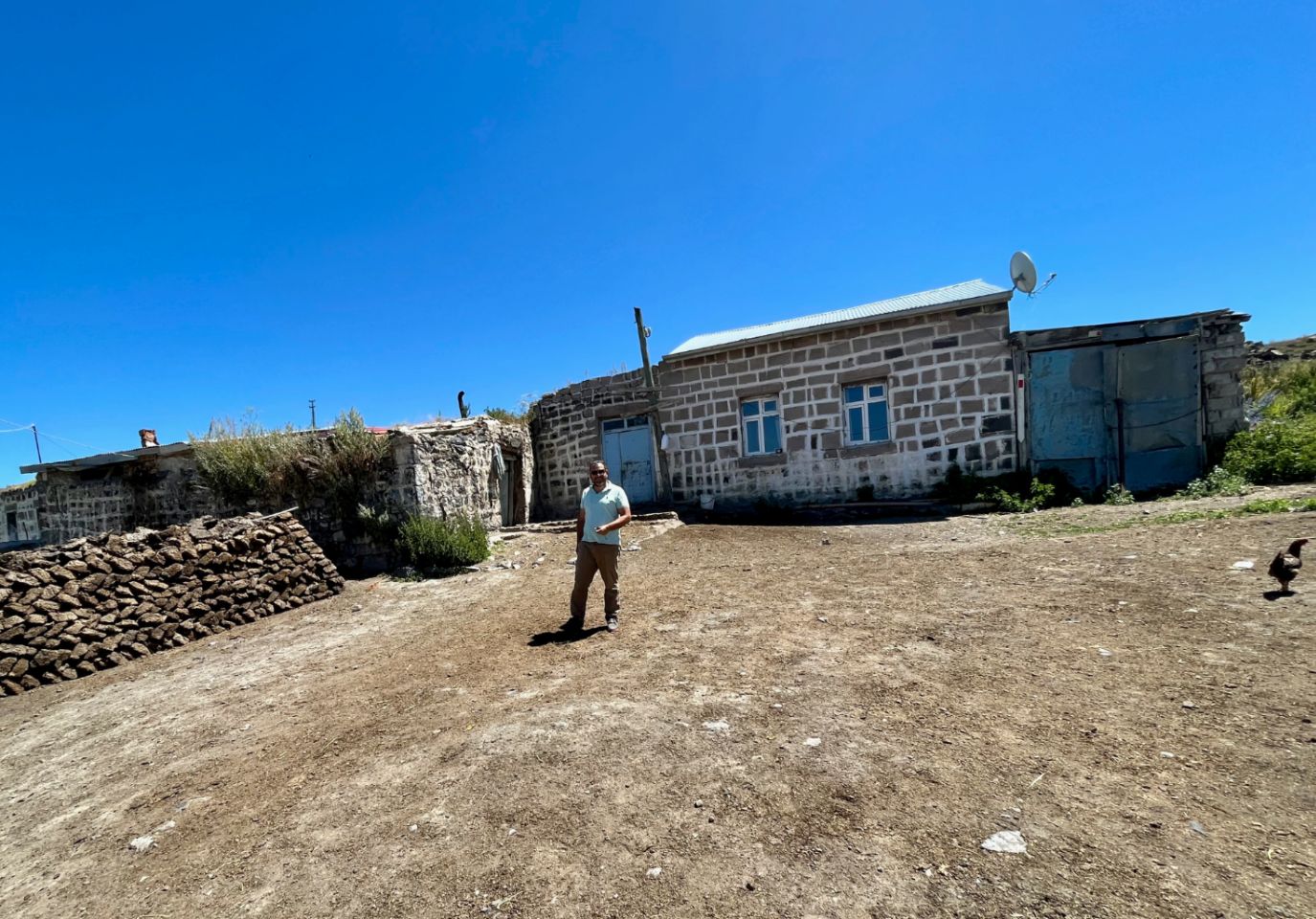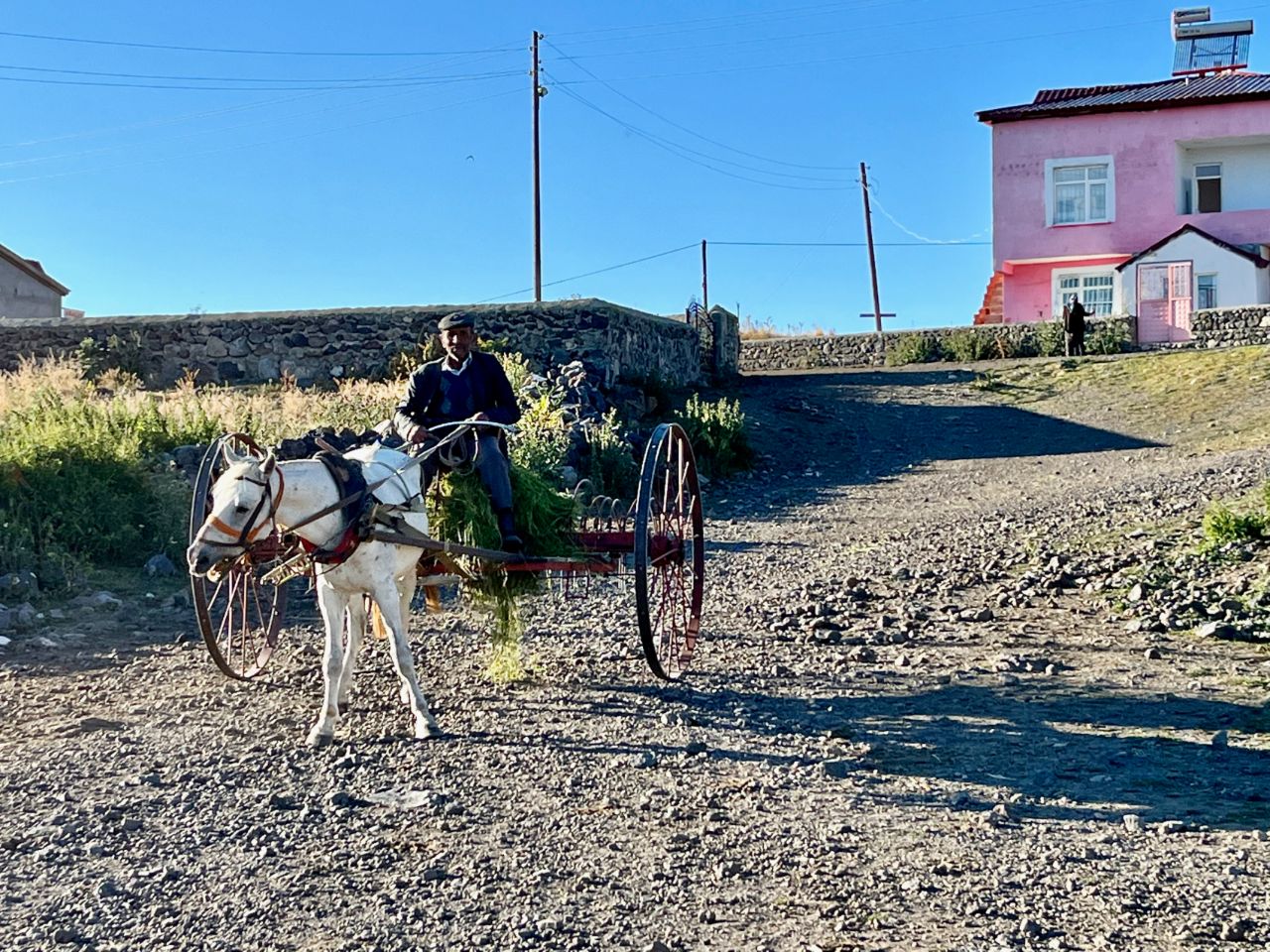 Ici les maisons sont en pierre de taille, petite et basse pour résister au climat, et même si l'on croise maintenant des tracteurs, le cheval garde encore son rôle dominant. C'est dans un hameau que nous retrouvons Alpaslan et sa famille dans ces terres natales. La grande occupation des habitants pendant les 4 mois de la bonne saison, c'est de faire les foins, mettre le combustible pour l'hiver à sécher (fabrication de briques de bouse et d'herbe), préparer les fromages...