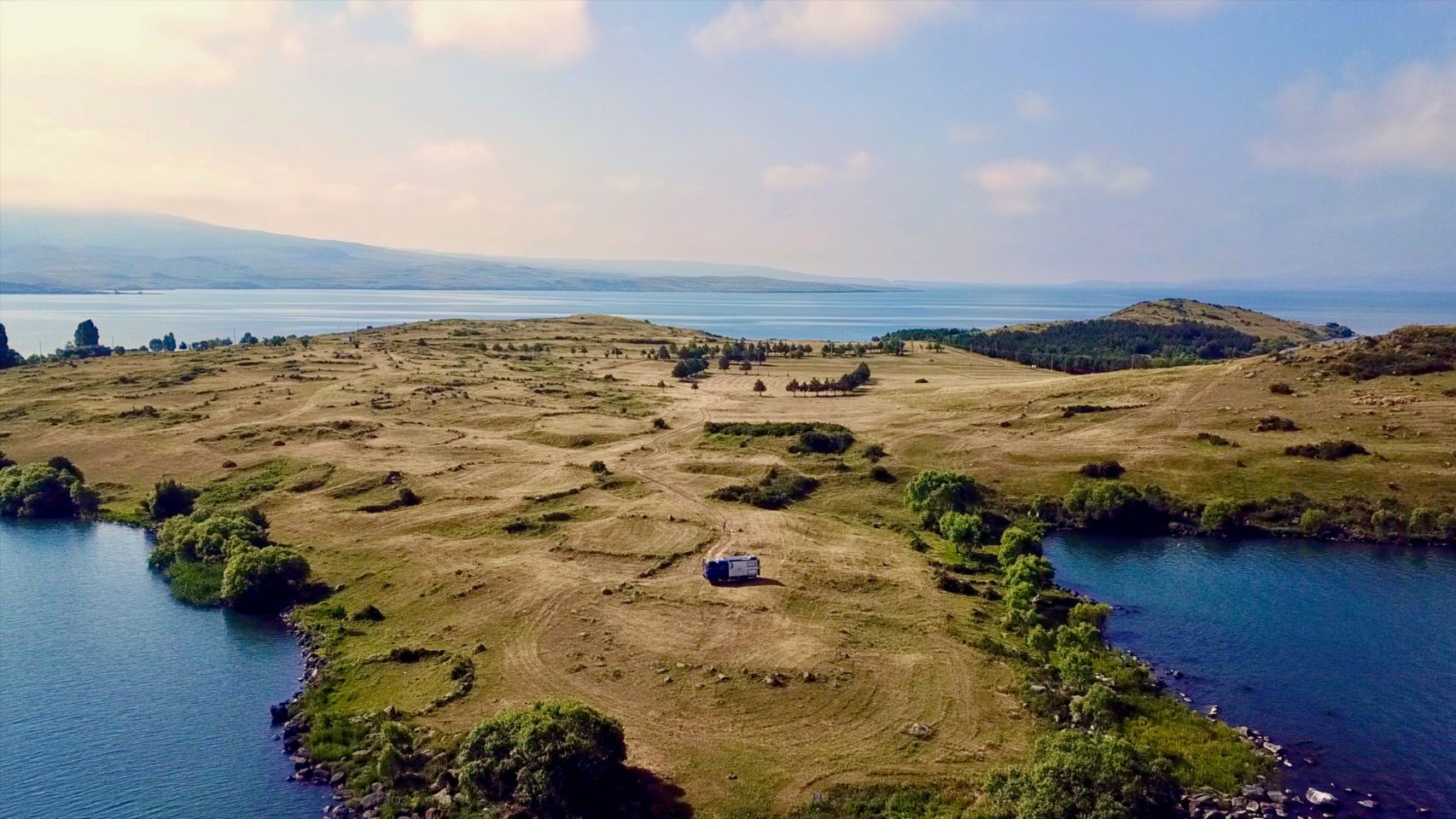 Nous sommes aux portes des frontières sur une péninsule d'un immense lac à 2000m. Ici en hiver les températures sont extrêmes et atteignent très fréquemment les -20°. Le lac est alors complètement gelé, les voitures peuvent rouler dessus.