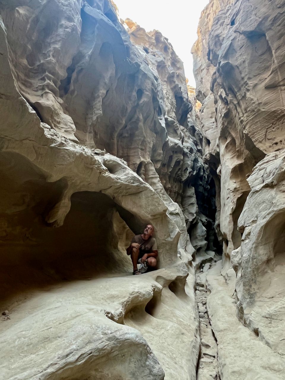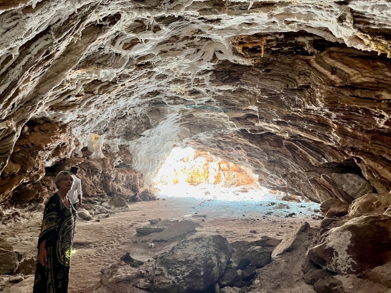 Salt Cave (26.61213, 55.51314), tu marches sur un immense tapis épais de gros sel, qui lui même tombe du plafond, pas mal celle là dans son genre, si tu crèves dedans, pas de soucis tu seras bien conservé ! 😜