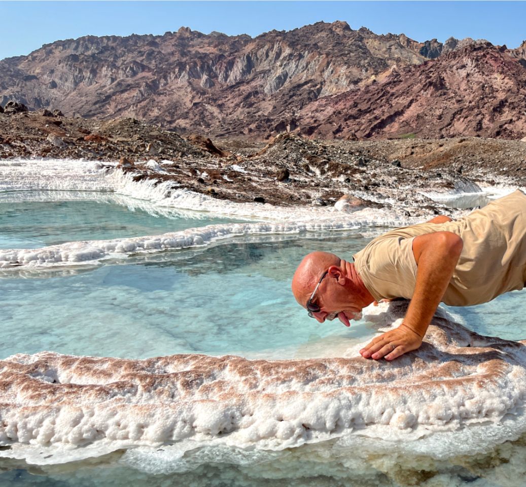 Un peu plus loin tout n'est que sel et tu te promènes dans des formations originales. Puis un bord de mer tout rouge ou un autre juste à côté couleur argent avec des paillettes métalliques, puis des petites falaises aux rochers sculptés en gargouille, puis... t'en finis pas de voir des choses zarbis et superbes.