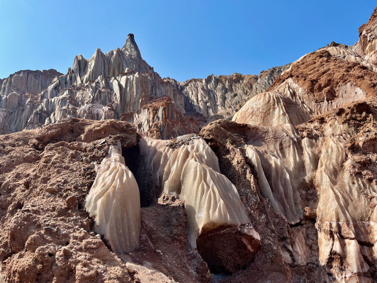 A little further on, everything is salt and you walk through original formations. Then a red seashore or another one just next to it, silver with metallic glitter, then small cliffs with rocks sculpted like gargoyles, then... you never stop seeing zany and beautiful things.