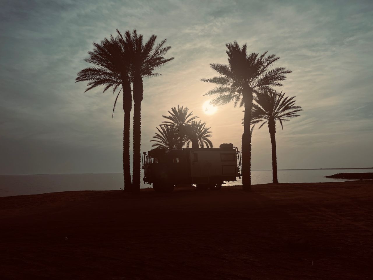 Au travers des énormes chantiers de construction de The Line ou autres infrastructures, on déniche quand même un bout de calme ou les palmiers sont bien vrais mais ils tremblent sans doute de l’avenir qui leur est réservé (28.10986 35.06050).
