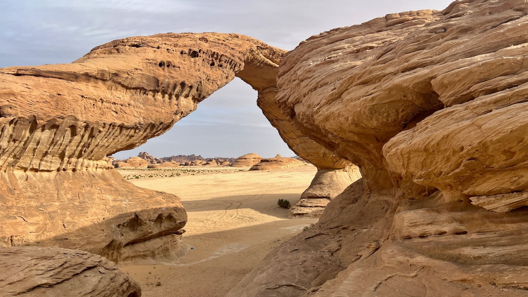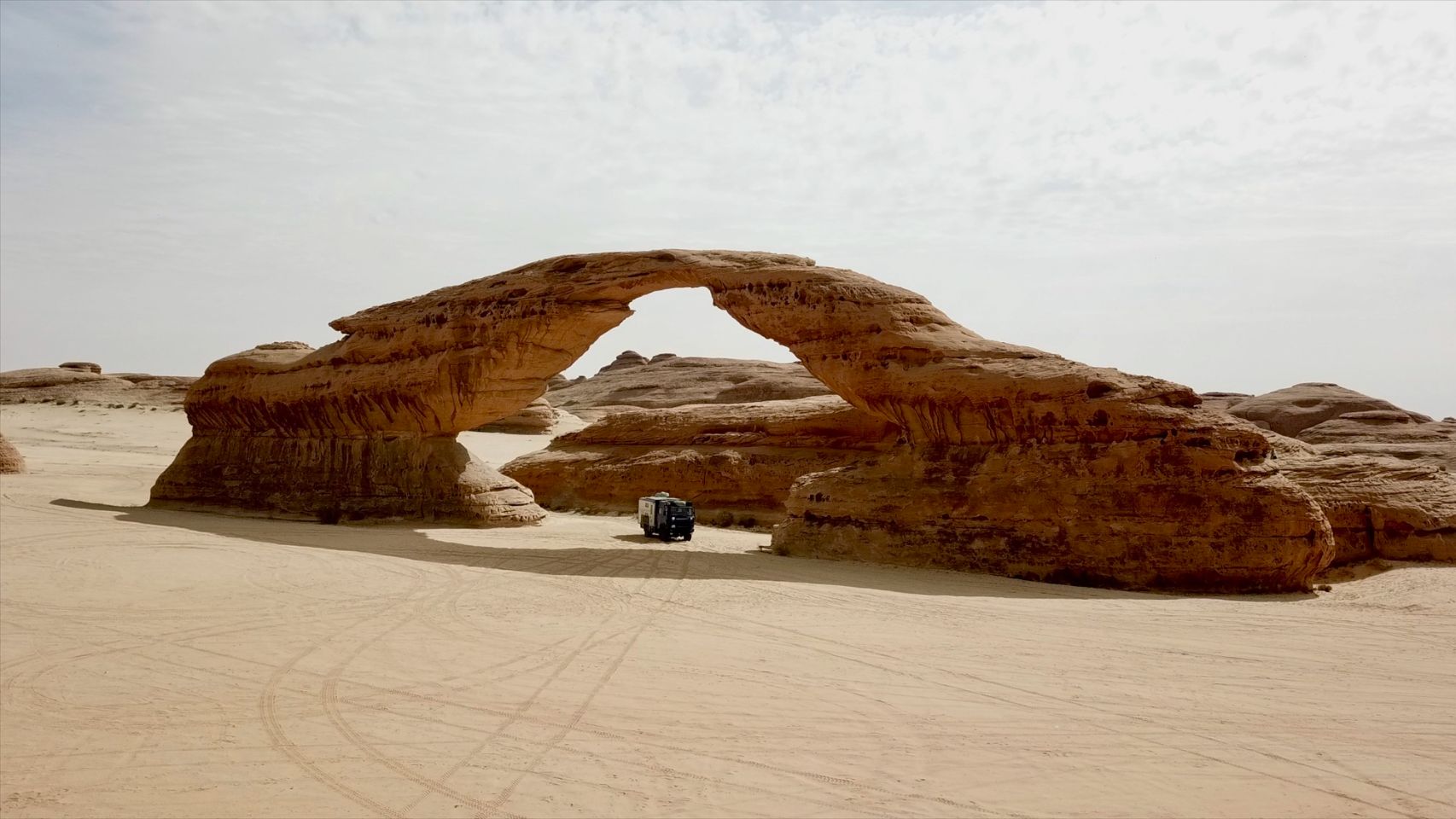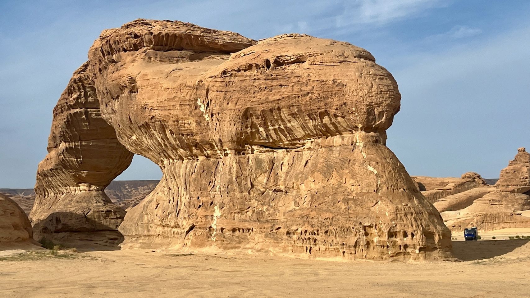 Why not? This is still an unparalleled site and moreover virgin of infrastructures. But probably not for long, because Al Ula is not far away and it's a safe bet that buses will soon be arriving in the area. The track seems to have been prepared recently to be asphalted one day.