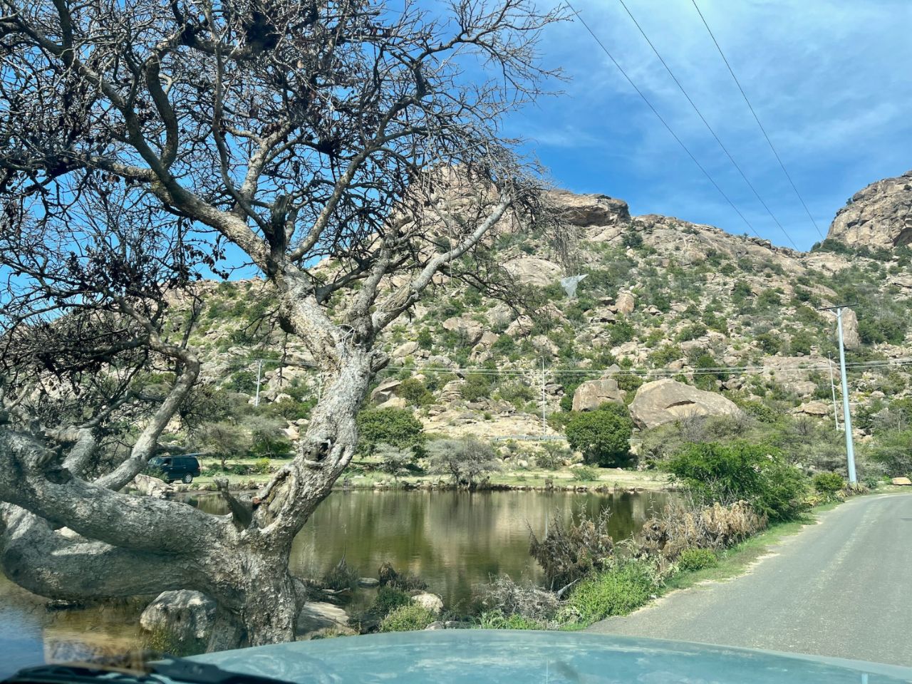 Avant d'arriver à Tanumah en venant par le nord, la route était jolie, mais plutôt monotone, du moins pas trop changeante. Là soudain, on descend sur un petit plateau et tout change. Des cailloux ronds, des collines pointues (si si) et tout plein de petits et moyens reliefs... Étonnante région de Tanumah, on nous l'avait mais comme l'on ne croit que ce que l'on voit....