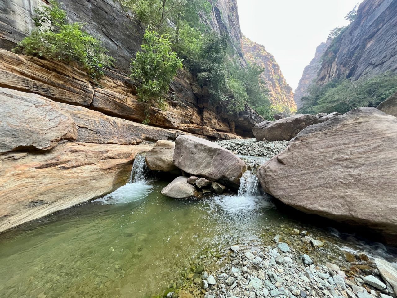 It's a magical little km to the end of the path, a wider spot at the junction of two streams. Just the thing to turn back. There are pools to swim in, monkeys and a few friendly locals who pass by during the day. The perfect bivouac!