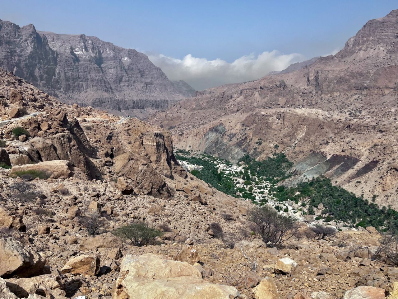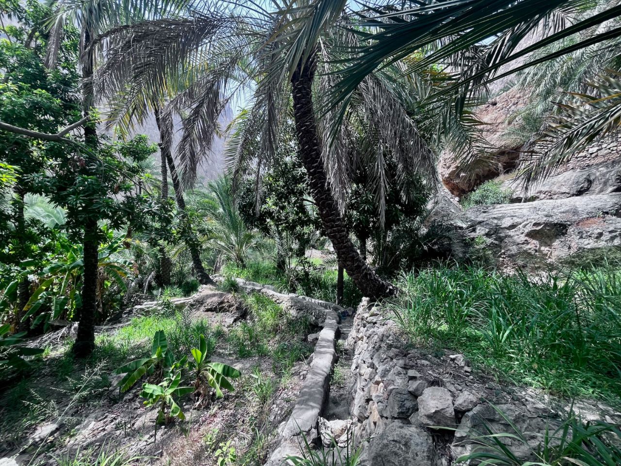 très nombreux atouts pour ce wadi qui en fait donc un must d'Oman : sa taille, sa petiote route (no poids-lourds !) qui traverse des hameaux palmeraies, ça monte, ça descend et tout au bout un petit paradis de piscines naturelles et de cascade.