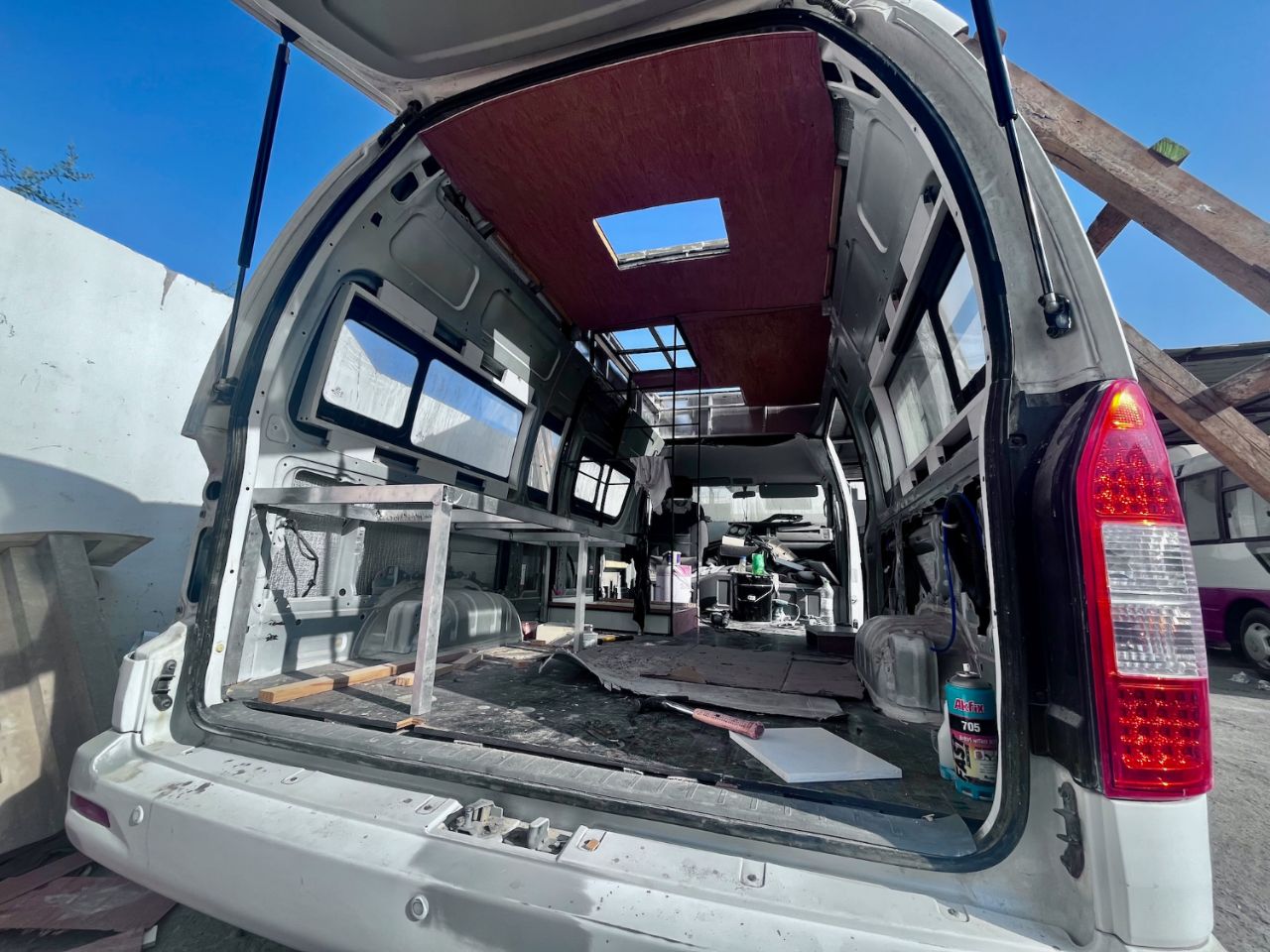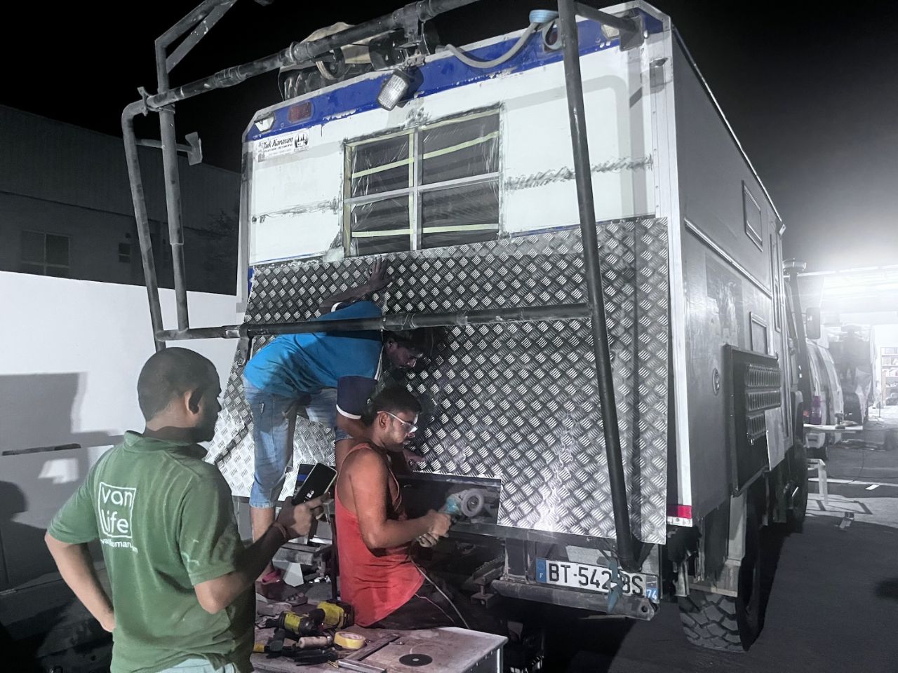 Voilà un Omanais qui a du cran ! Le cran quand tu es jeune d'avoir su réagir au début du covid et de décider de transformer ses minibus à vocation touristique en vans aménagés. Du coup le voilà à la tète d'une entreprise d'une quinzaine de personne regroupant les différents corps de métier lié à son activité. L'équipe de pakis est très sympa, elle a du savoir faire, l'ambiance est bonne et ça bosse dur. Ça dessine, ça invente, ça retape, ça fabrique tout pour tout type de boite à roues.