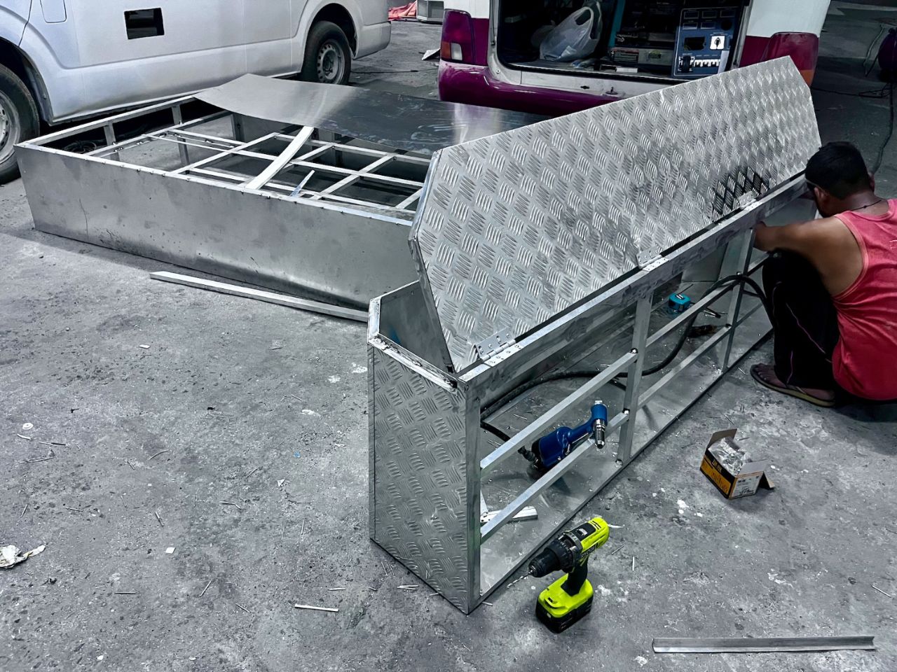 Here's an Omani with guts! The guts when you're young to have reacted to the start of covid and decided to transform his tourist minibuses into converted vans. As a result, he is now at the head of a company employing a dozen or so people in the various trades involved in his business. The team of pakis is very nice, it has know-how, the atmosphere is good and it works hard. They design, invent, rework and make everything for all types of wheelboxes.