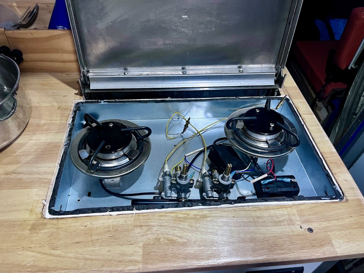Pour nous pour ce 2ème séjour en ce lieu, ce fut découpage / renforçage d'une petite partie de la cellule, modification des plaques gaz, sécurisation des motos. A noter le gros boulot effectué en quelques semaines sur un pauvre pick-up cellule autrichien bien amoché lors d'un accident. Nous avons vu l'avant, le pendant et l'après, c'est tout simplement impressionnant. Comment redonner vie à ce qui serait partie à la casse (cf les deux dernières photos).