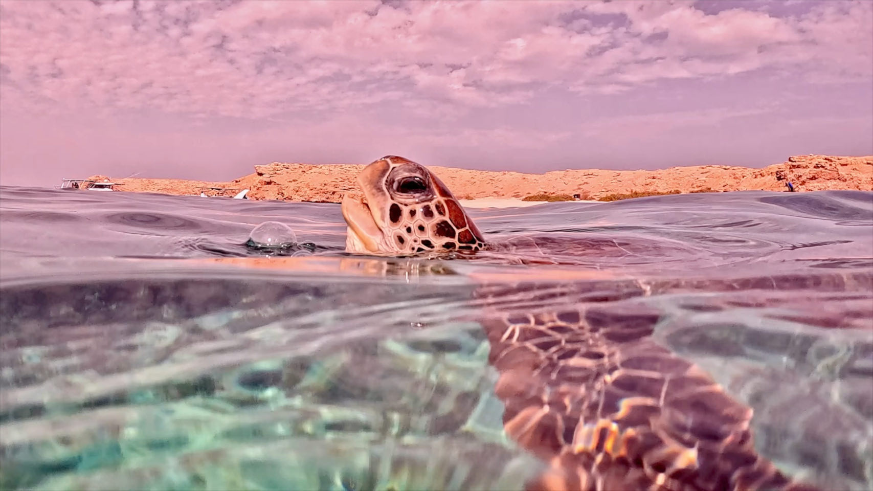 - Get out of my way a bit! My sea isn't big enough! Do you want me to give you a little shellacking?"- "Yeah, all right, the sea's your thing and you're at home"- "I don't blame you, I'm doing my turtle life anyway, I'm just going to take a breather up there. You can enjoy me or all my girlfriends who are eating just below" - "Don't worry, I'm just passing through anyway... Long live you turtles!"