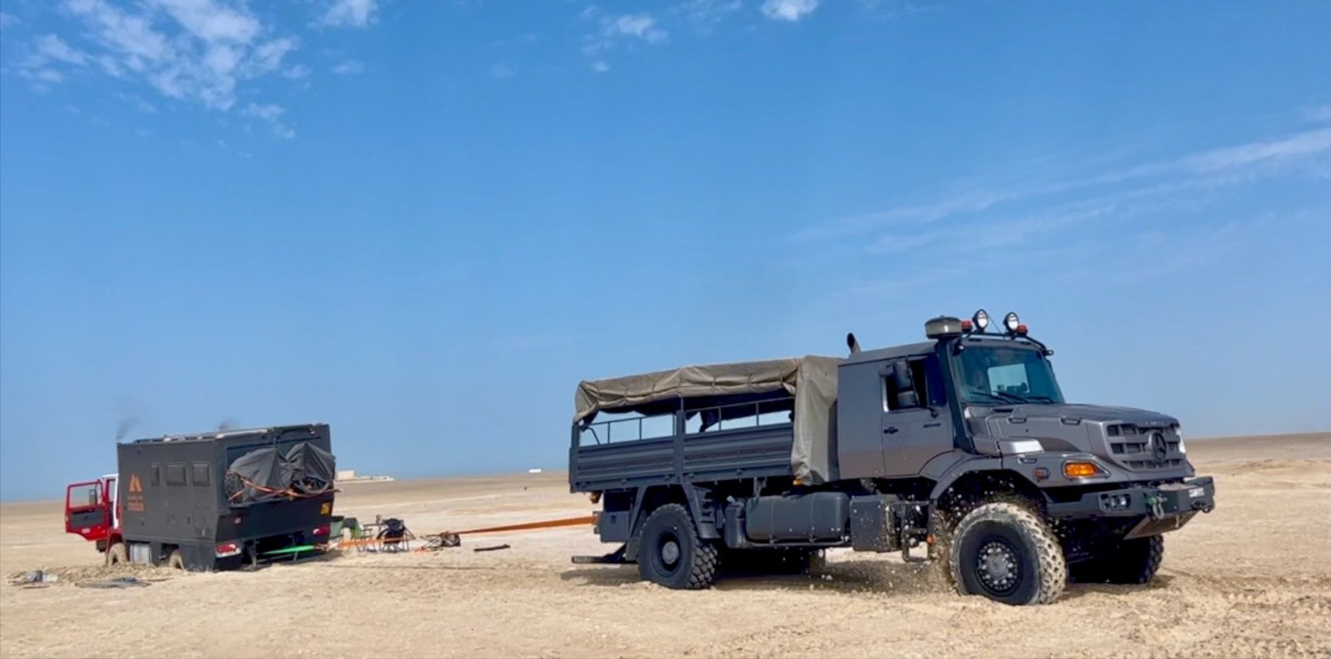 It's dark and 2 km down the road, the track is sniffing out the wet stuff when it rains, so here's my friend Alilouche from the whatsapp group with his truck bent over, stuck in the treacle! 😂
