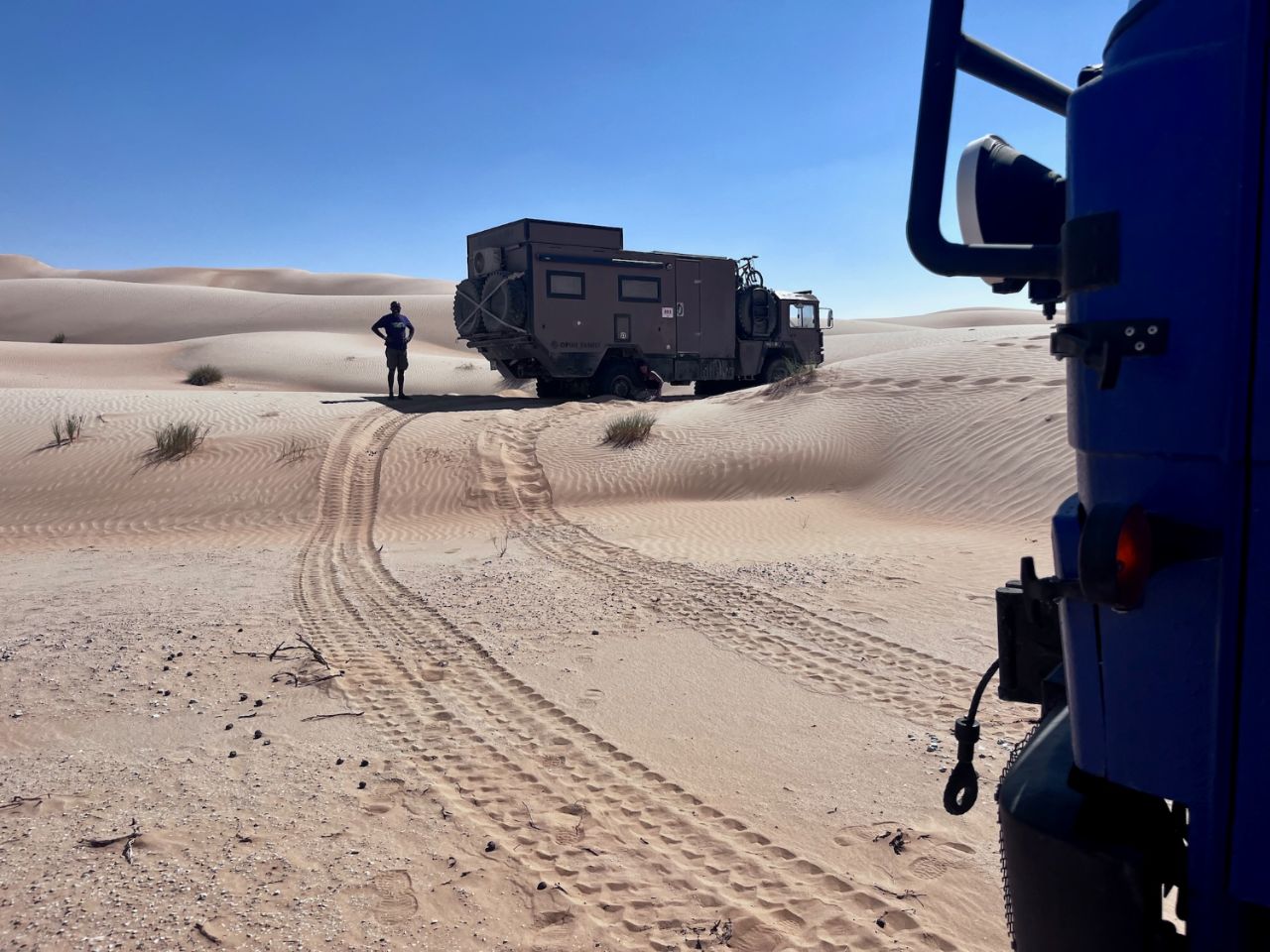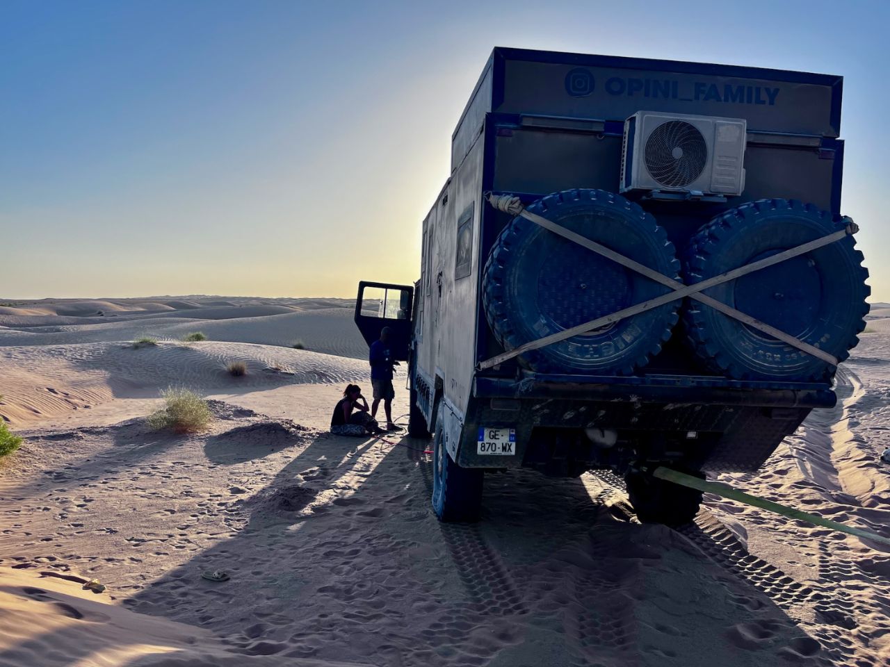 We came to test ourselves, to learn. Ah well, from the very first difficulty, soft sand and a climb, it didn't fail, we were stuck deep in the sand! 😳 We were told we had to deflate. Yes, but you don't think we could tell you how much to deflate (?!?). On the other hand, we do tell you: "but be careful you don't go crazy afterwards". Yeah well, that's a bit of a shock...