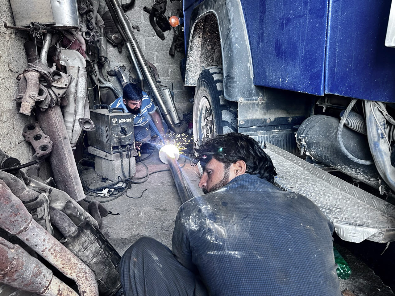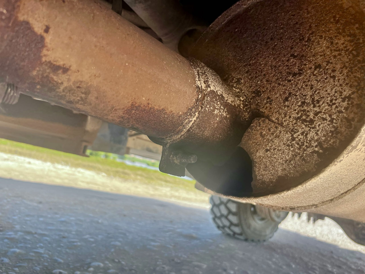 Tiens un bruit coté échappement ? Ah ben oui y'a quand même un sacré trou dans le silencieux. Mamoumouchkila (pas de problème) un tour dans un garage et Cargol pète moins bruyamment. Bon le nouveau silencieux s'avèrera d'occasion, ayant sans doute une garniture un peu fatiguée vu son ronronnement dans les tours. Ça fait quand même le job et a 44 ans d'âge, le voilà avec un colon plus rutilant 😂.