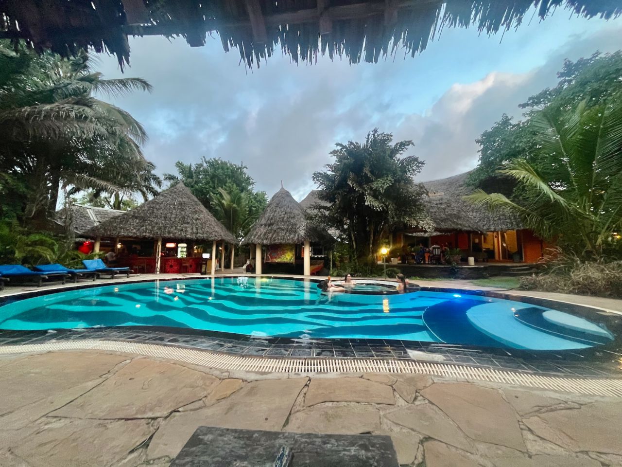 Diani backpackers: after these few technical improvements and given that we'll be expecting Christian, let's take advantage of this pretty setting, with its friendly staff. What's original about this place is that a team of 6 young people on workaway (a small job in exchange for bed and board) also occupy the premises and are in charge of the entertainment on site and on the social networks. Even if the entertainment isn't particularly professional (volleyball on the beach, a 5-minute walk away, water sports outings, karaoke worthy of Star'SonFaux, unorganised games night, university-level quizzes, etc.), it all adds up to a dynamic atmosphere that has the advantage of attracting people from outside, turning Diani backpackers into the only lively local area in the low season. And with the lovely setting and the 28°C swimming pool, we've come to the right place! Intuition when you hold us! 🤪